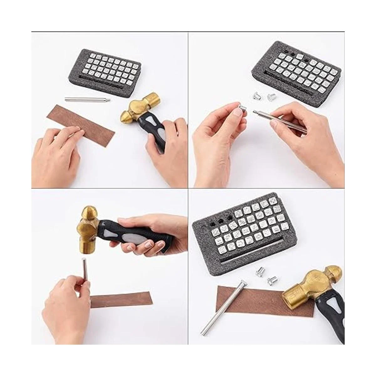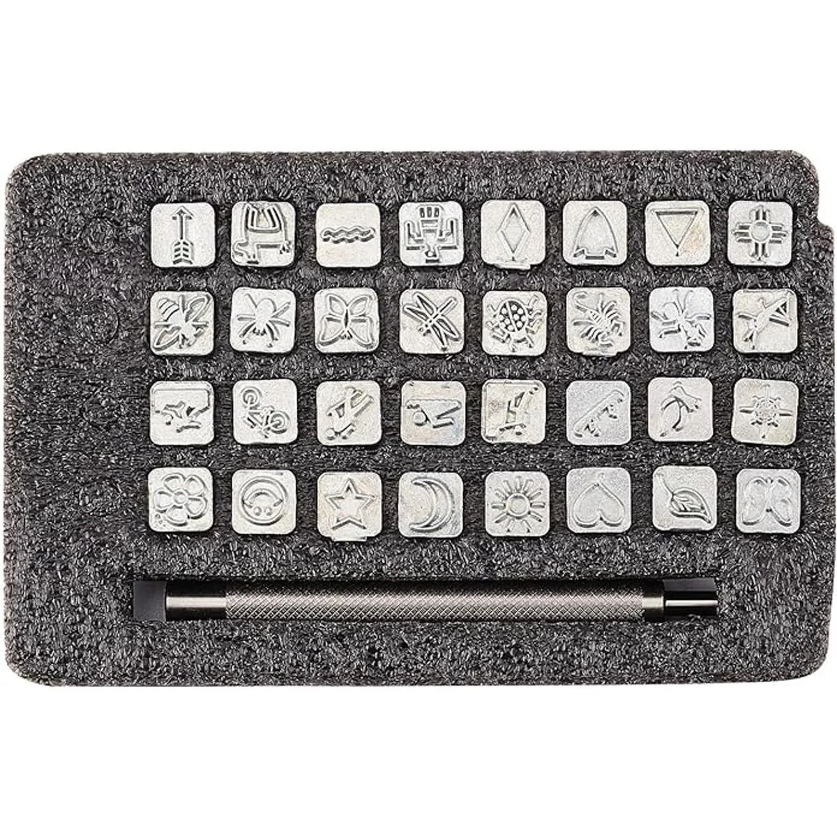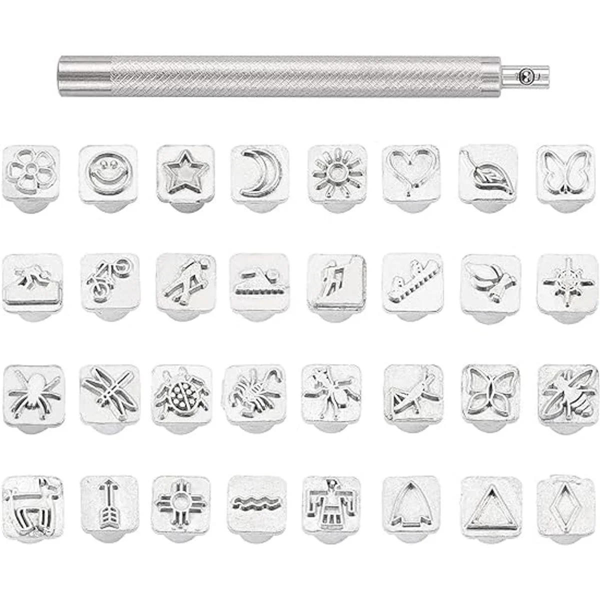 PH PandaHall Juego de 32 sellos de acero inoxidable con 1 asa para cinturón de cuero, manualidades, manualidades, joyería y marcado