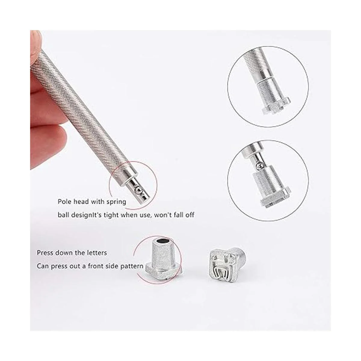 Fácil operación: fácil de presionar en el cuero, se utiliza con el mango antideslizante moleteado para grabar permanentemente nombres, direcciones y otros sentimientos en el cuero.