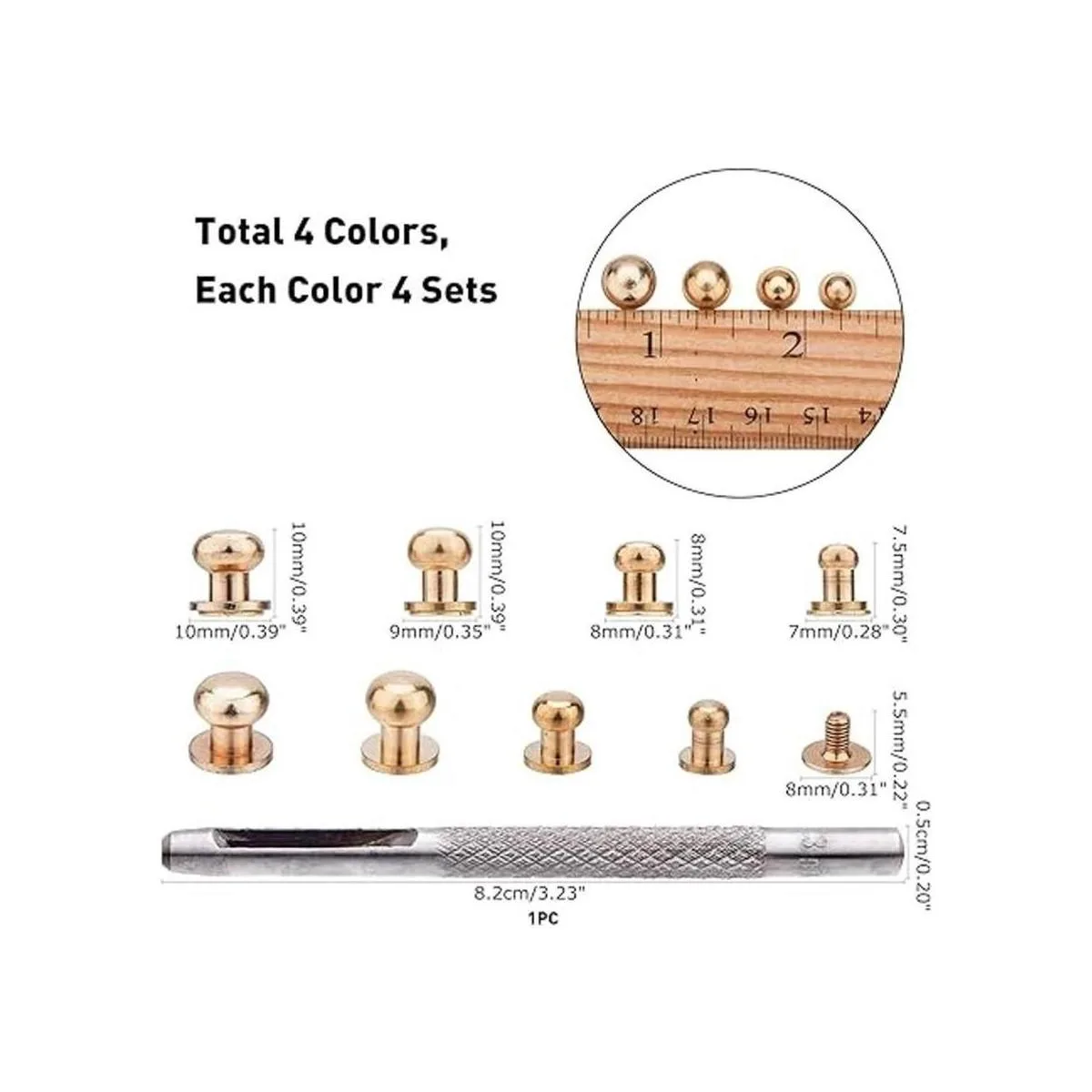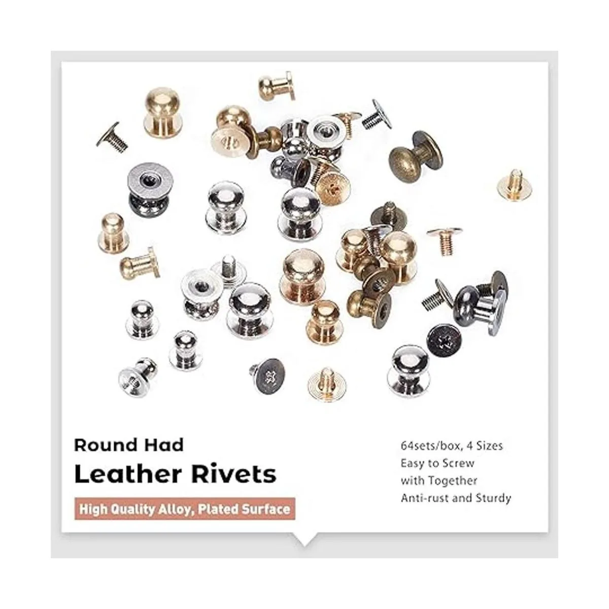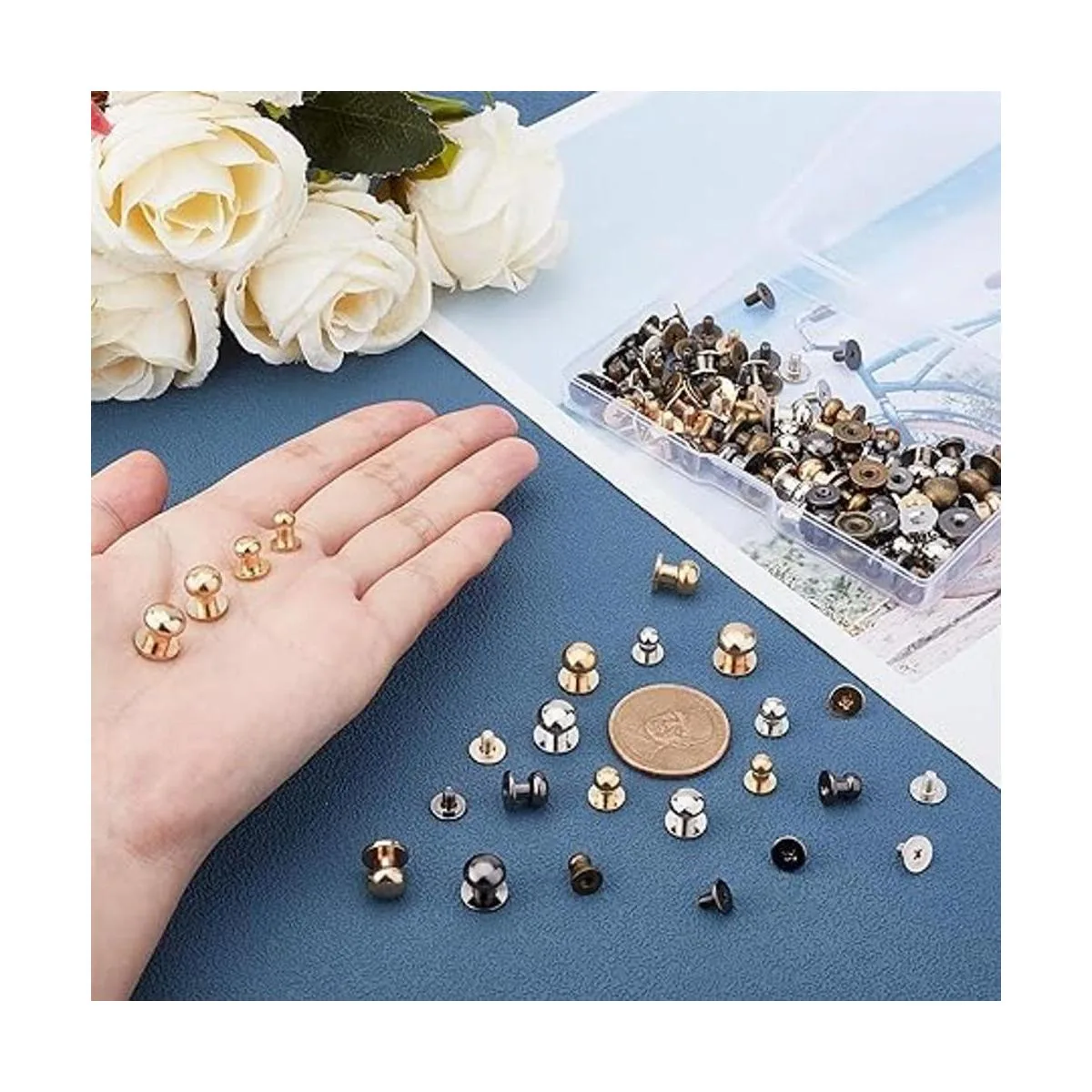 PH PandaHall Juego de 64 botones de metal con remaches de metal de 7, 8, 9 y 0.394 in, remaches para clavos, remaches de metal para manualidades de cuero, bolso de mano, bronce antiguoGunmetalplatinodorado