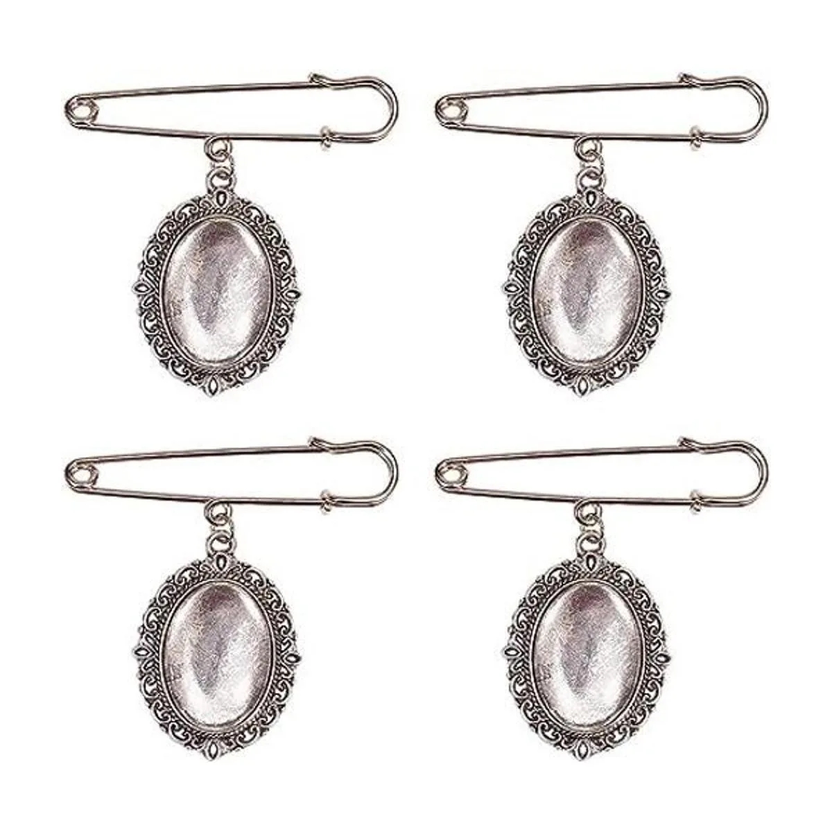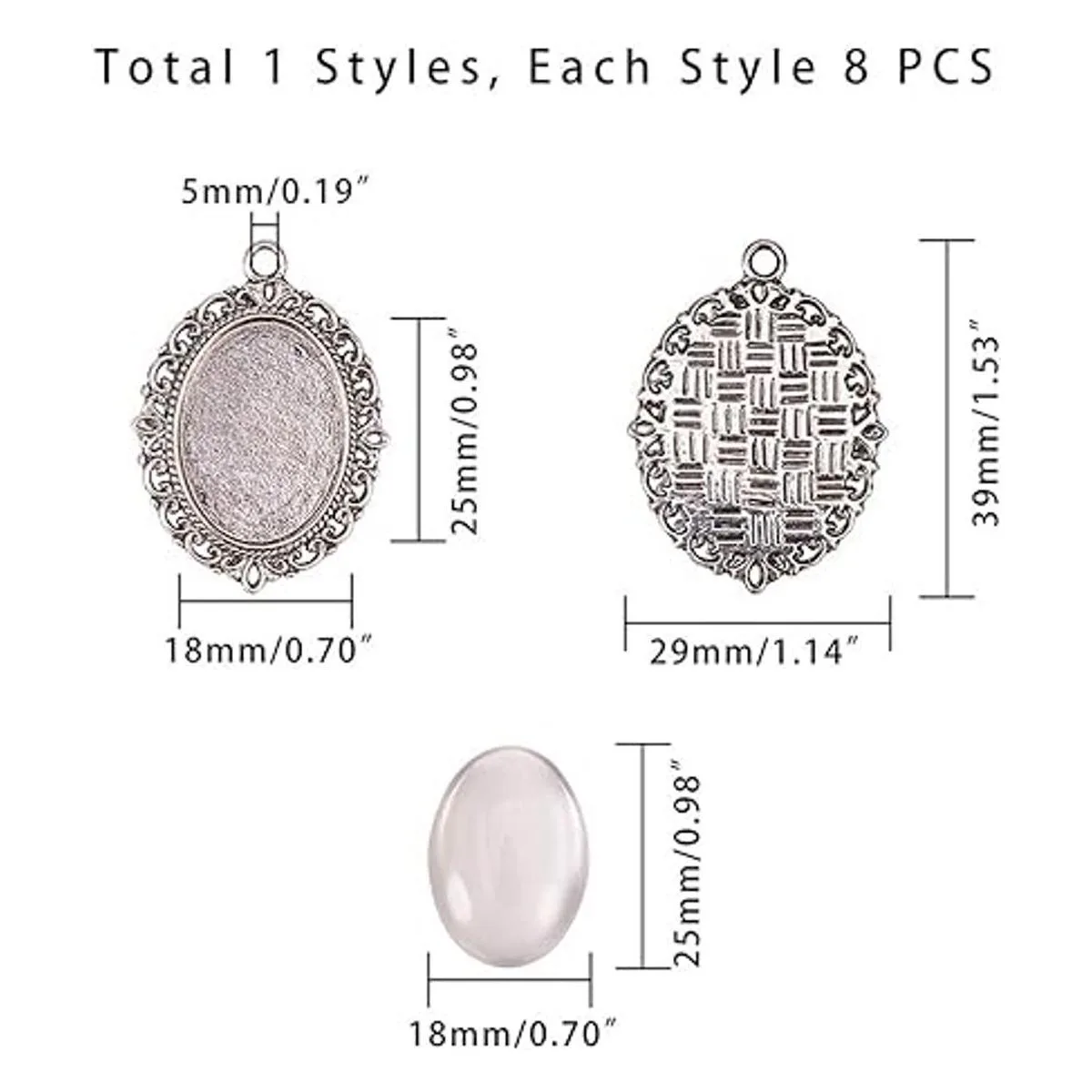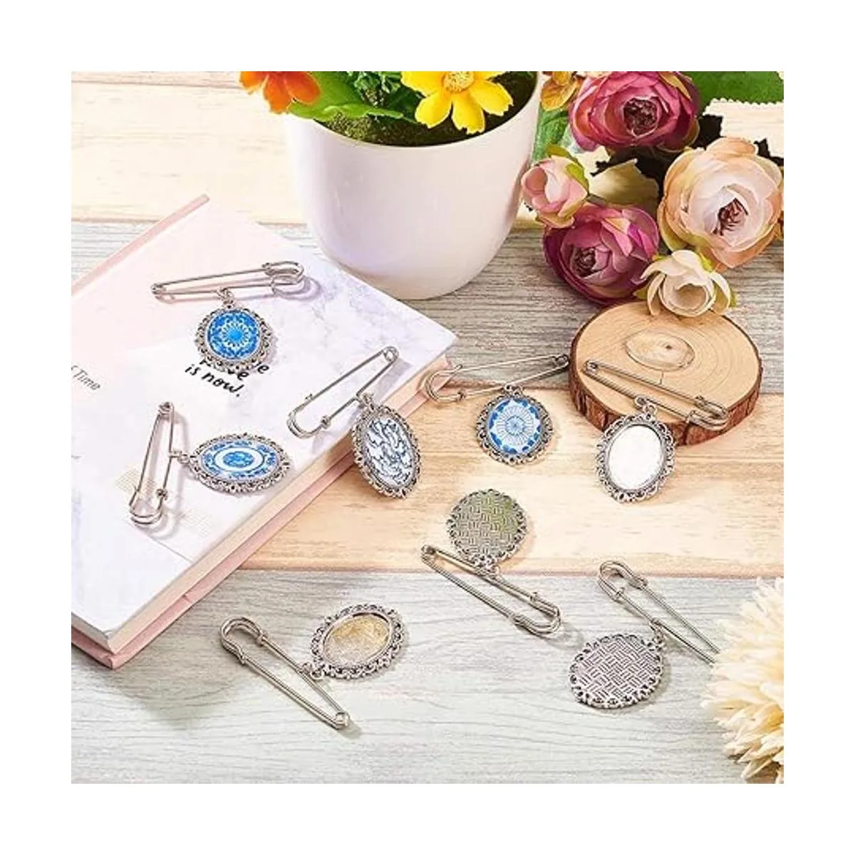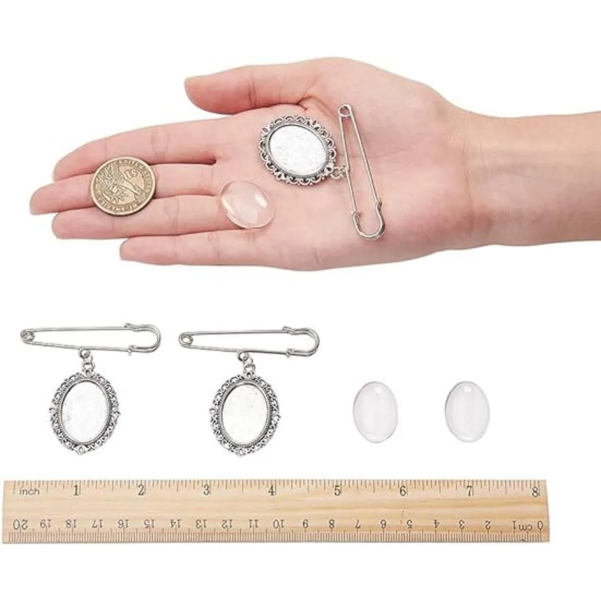 PH PandaHall Juego de 8 broches de bricolaje que incluye 8 bandejas de hierro con 8 piezas ovaladas de cristal transparente, cabujones de boutonniere para bodas, fiestas de plata antigua y platino