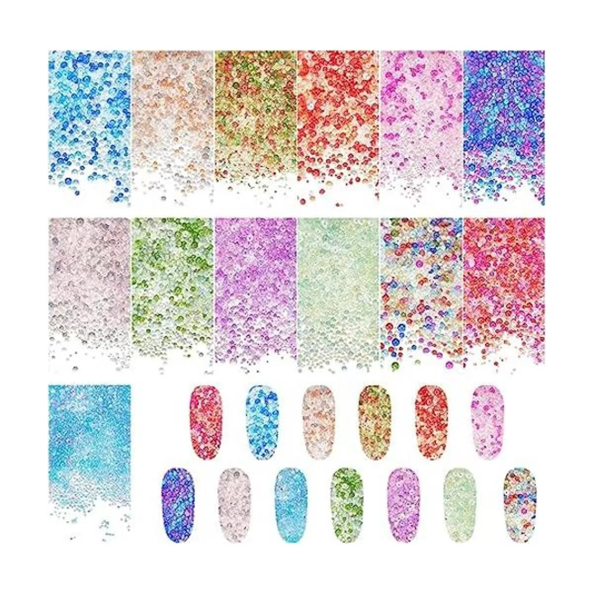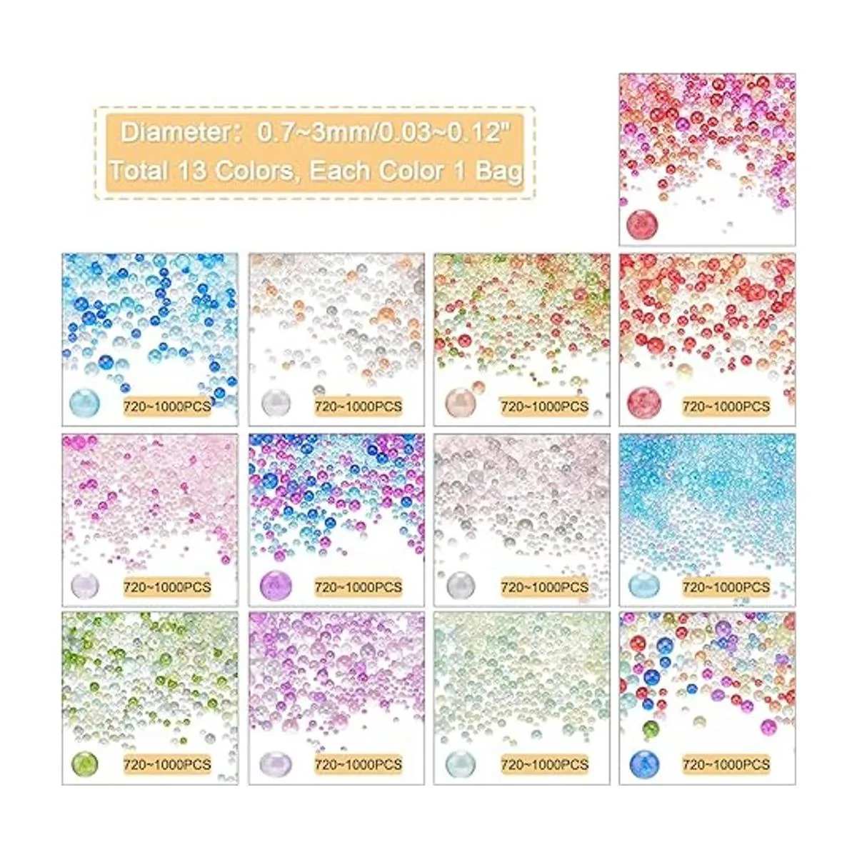 PH PandaHall Más de 10000 cuentas de burbujas de resina, 13 mini cuentas de cristal iridiscentes sin agujero, mini cuentas de arena de vidrio para hacer bricolaje coctelera, relleno de moldes de resina, joyería, decoración de uñas UV de 0.7 a 0.118 in