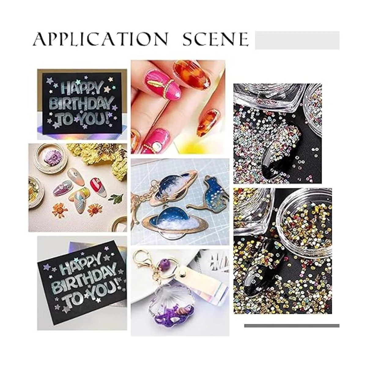 Manualidades de bricolaje: se pueden utilizar para hacer maquillaje, decoración de manualidades, hacer prendas especiales, úsalos para decorar bolsos, zapatos, joyas, funda de teléfono celular, manualidades de tarjetas, vestido de novia, libro, bolígrafo, guitarra, tazas, tacones altos, etc.