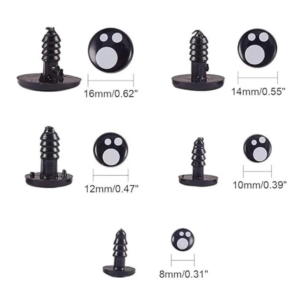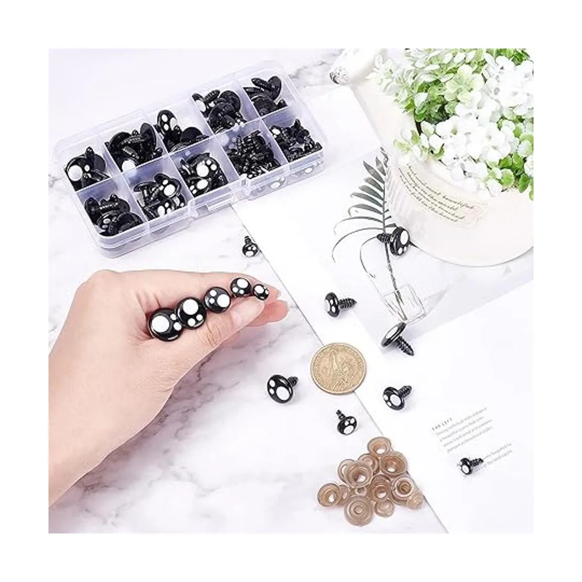 PH PandaHall Ojos de seguridad de resina, 100 piezas de ojos artesanales de 5 tamaños, ojos de ganchillo negros rellenos con 100 arandelas para oso de peluche, manualidades amigurumi, marionetas, fabricación de animales de peluche 81012140.630 in