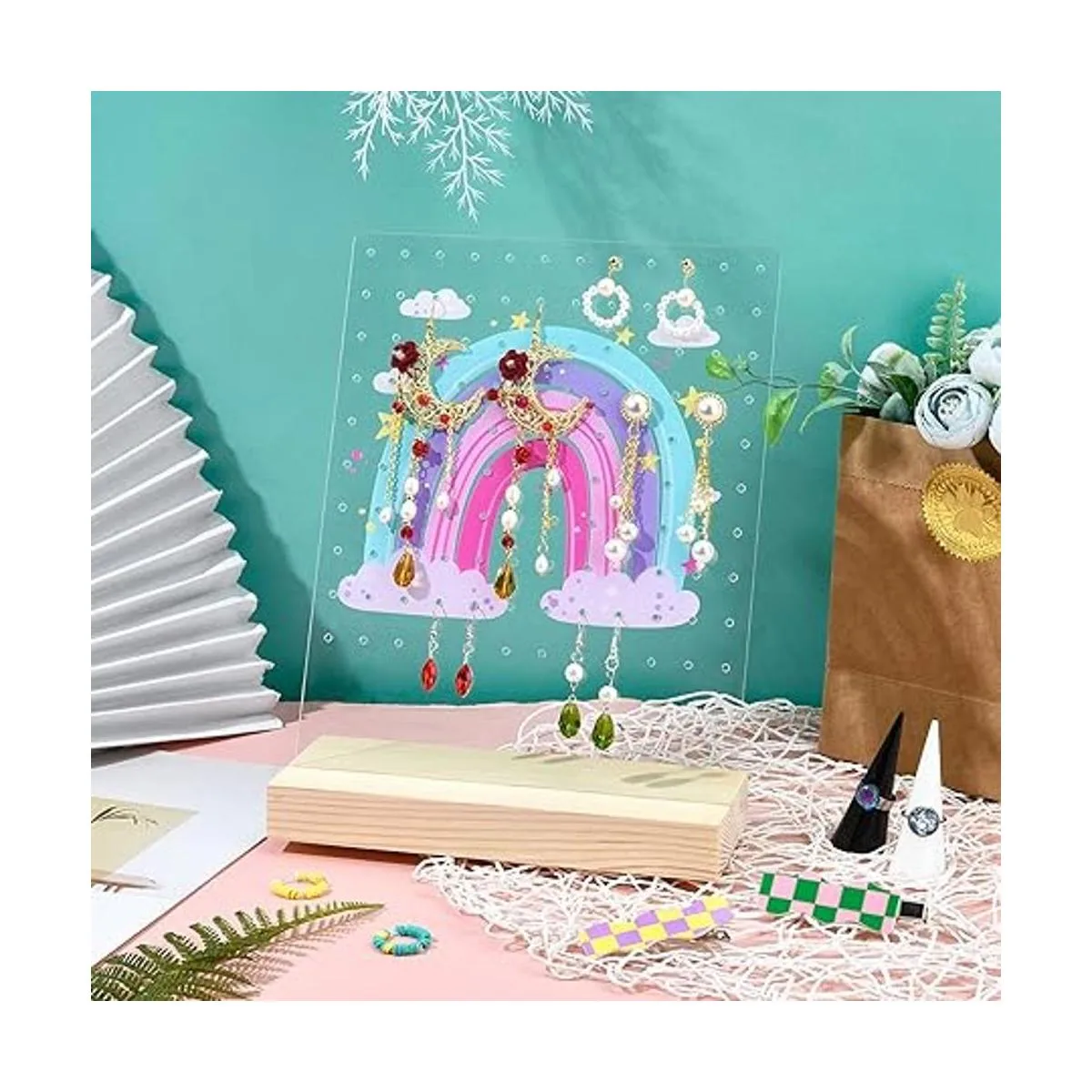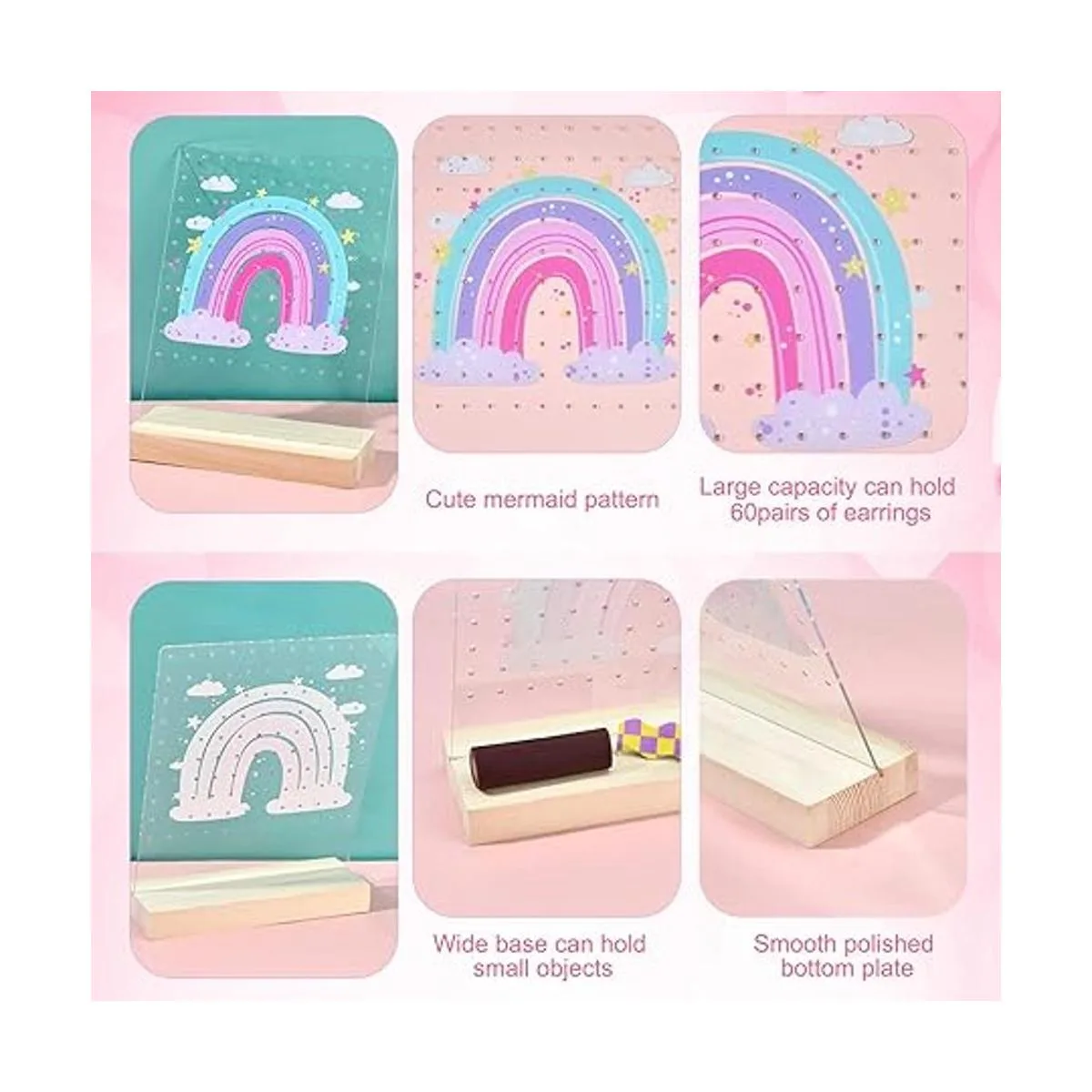 Organizador de aretes arcoíris: con arco iris vívido impreso en el organizador de joyas. Perfecto para mostrar pendientes. Ya no te preocupes por perder uno de tus pendientes. Mantén la cómoda limpia y ordenada.