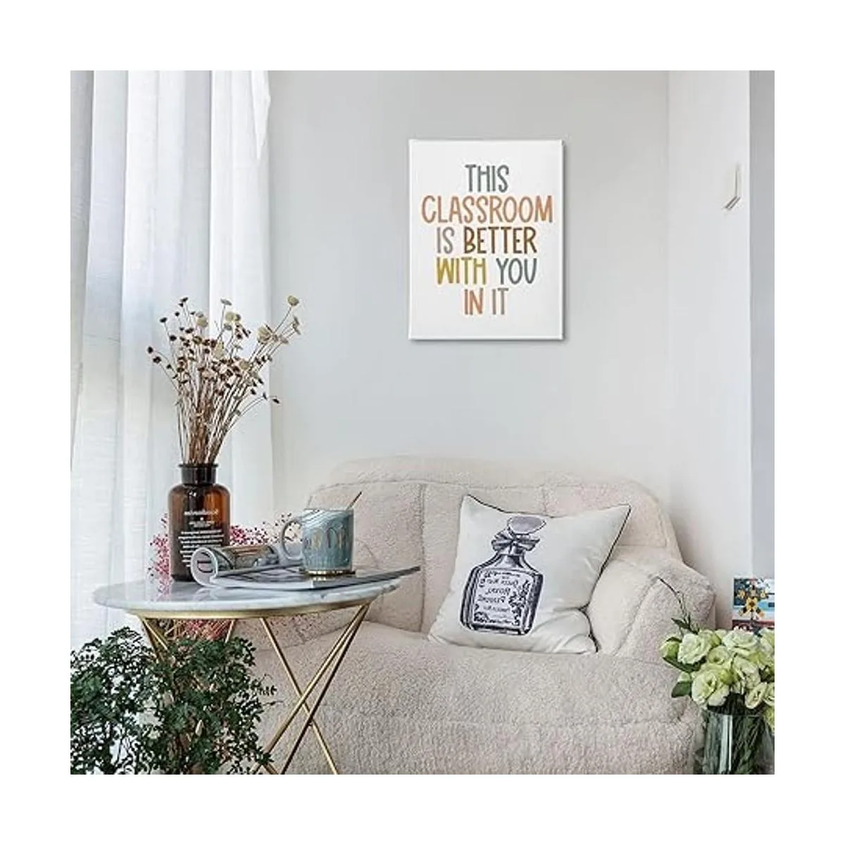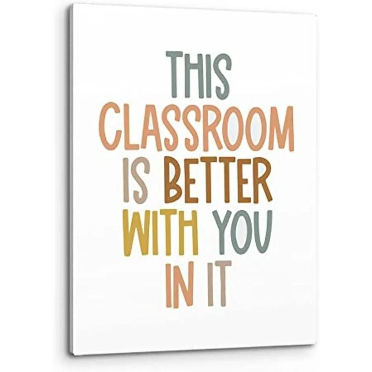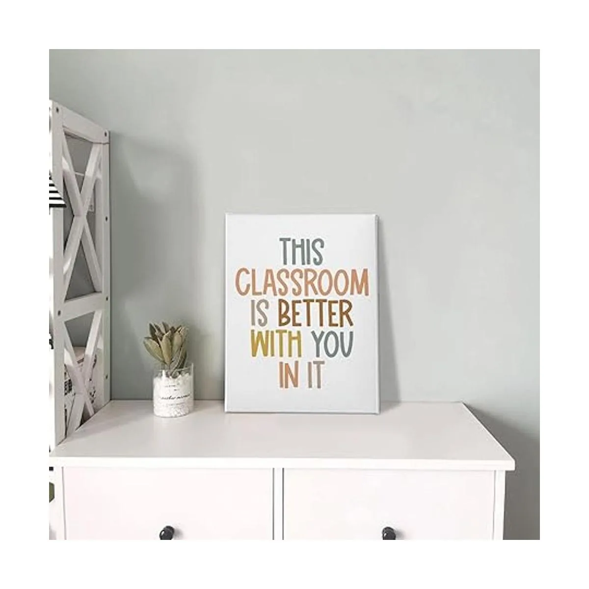 PHAMTE Este aula es mejor contigo en ella, arte de pared, inspirador y motivacional, bohemio, para niños, aprendizaje educativo, lienzo, enmarcado, pintura artística para el hogar, aula, sala de juegos 11 x 14 pulgadas