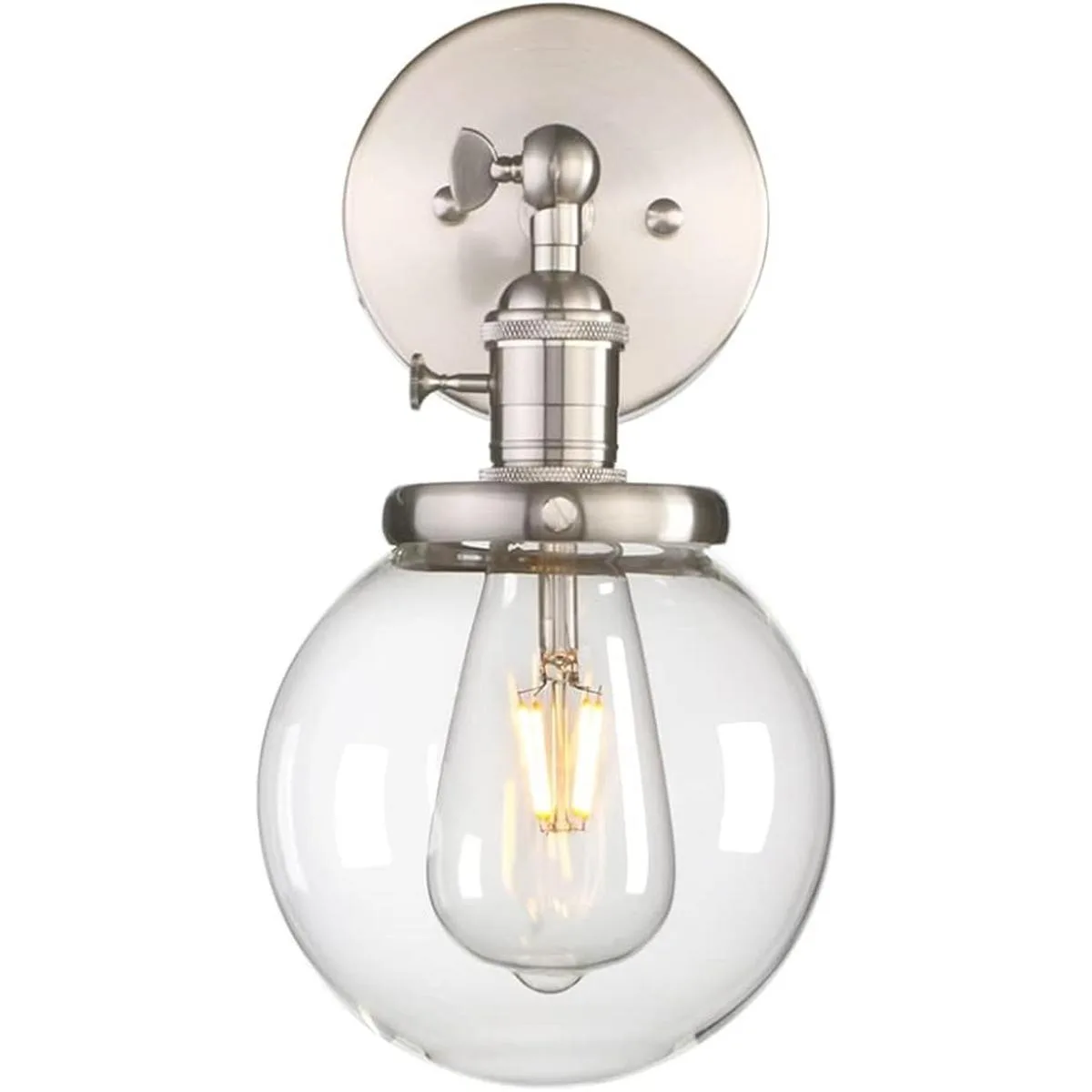 Phansthy Lámpara de baño con lámpara de pared industrial individual con pantalla de globo de 5.9 pulgadas cepillada