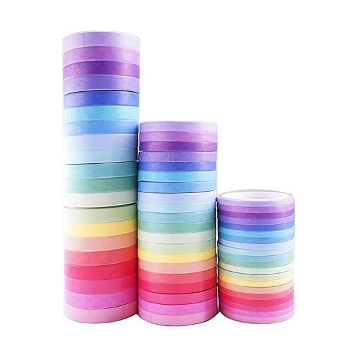Juego de 60 rollos de cinta washi: el paquete incluye 60 rollos de cinta adhesiva de color sólido en diferentes anchuras de 0.315 in/0.197 in/0.118 in. Longitud: 16.4 ft. Bonito diseño de color con 20 colores diferentes para decorar tu diario.