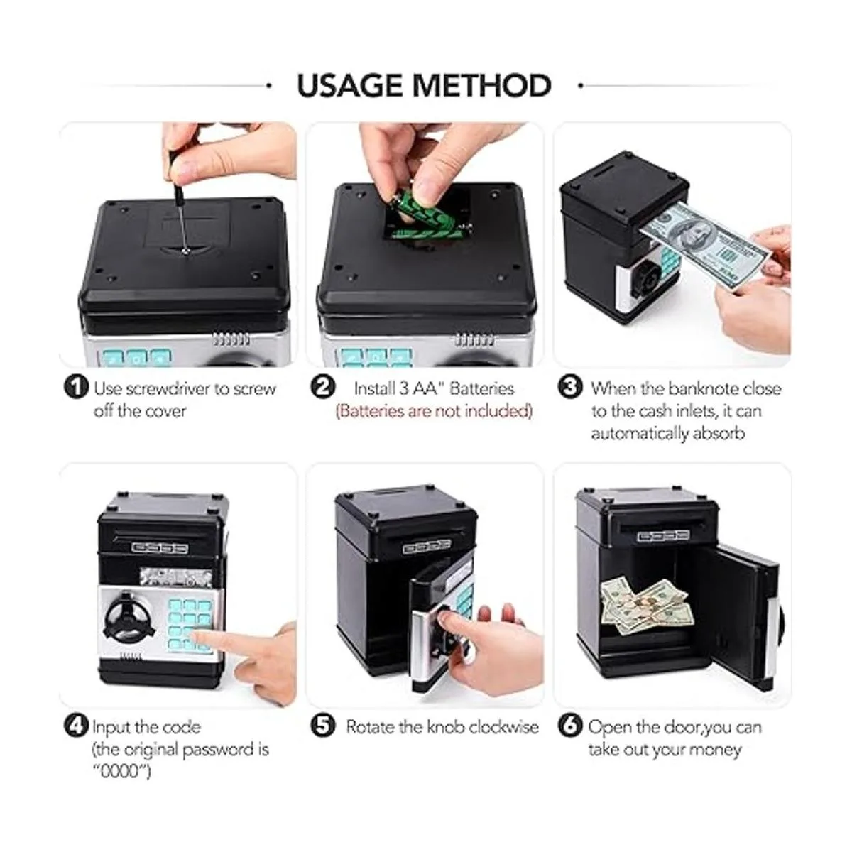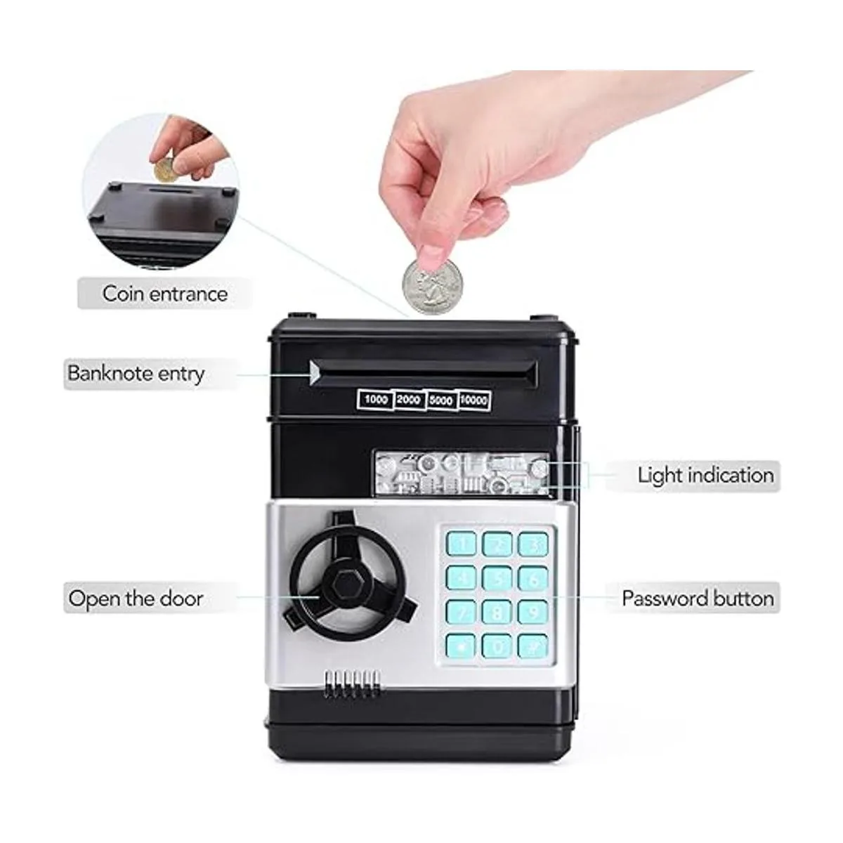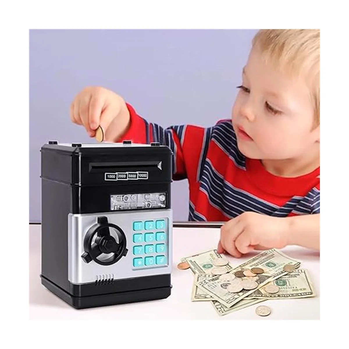 PhilaeEC Alcancía para niños, moneda electrónica para niños con protección de contraseña, cajero automático, contraseña, moneda en efectivo, puede desplazarse automático, caja de ahorro de dinero de papel