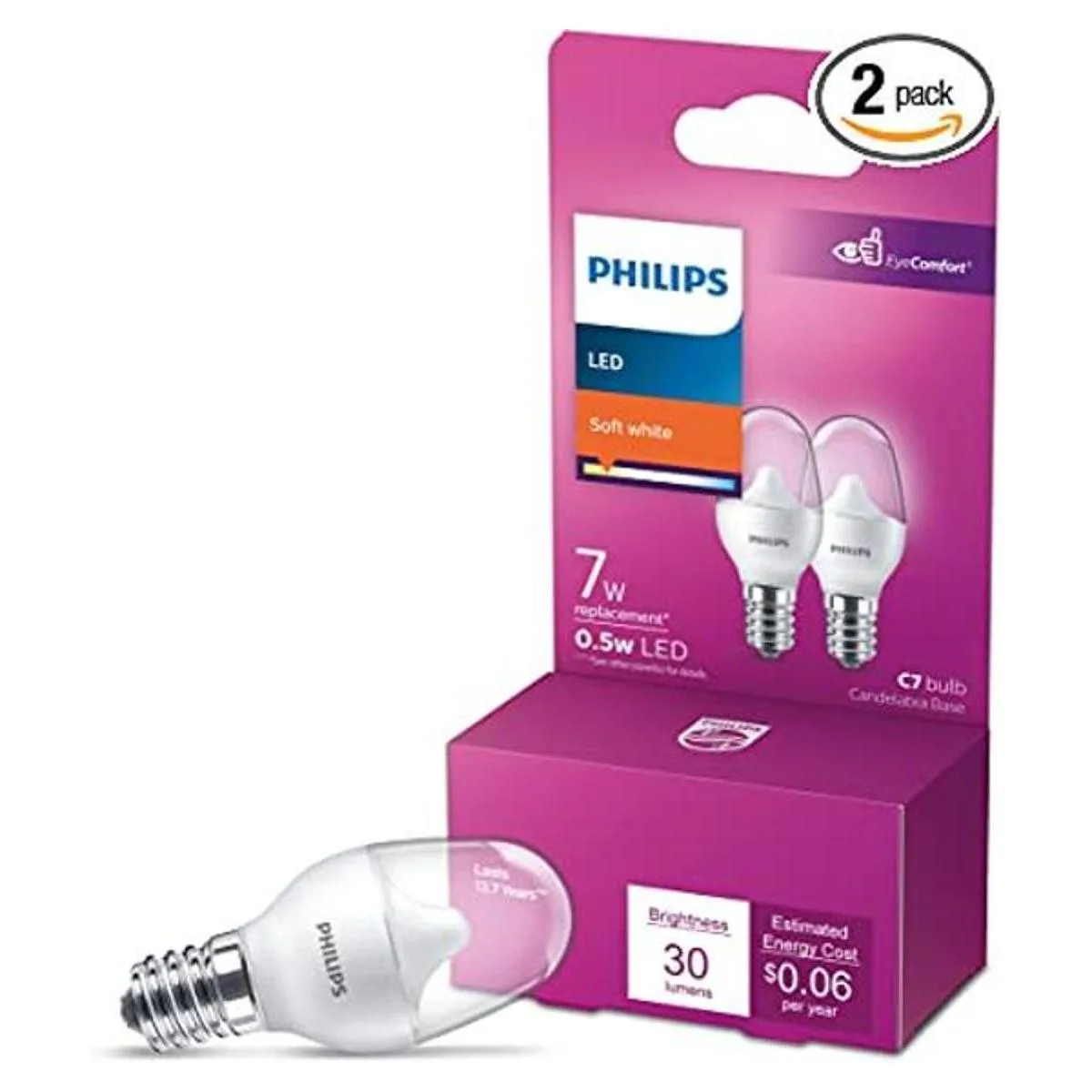 Philips LED Bombilla nocturna C7 sin parpadeo esmerilada, no regulable, tecnología EyeComfort, 30 lúmenes, luz blanca suave 2700 K, 0.05 W 7 W, base E12 574038, paquete de 2 unidades