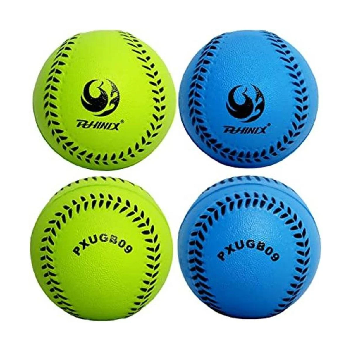 PHINIX Béisbol de espuma suave de 9 pulgadas para practicar niños, paquete de 4 azul y verde
