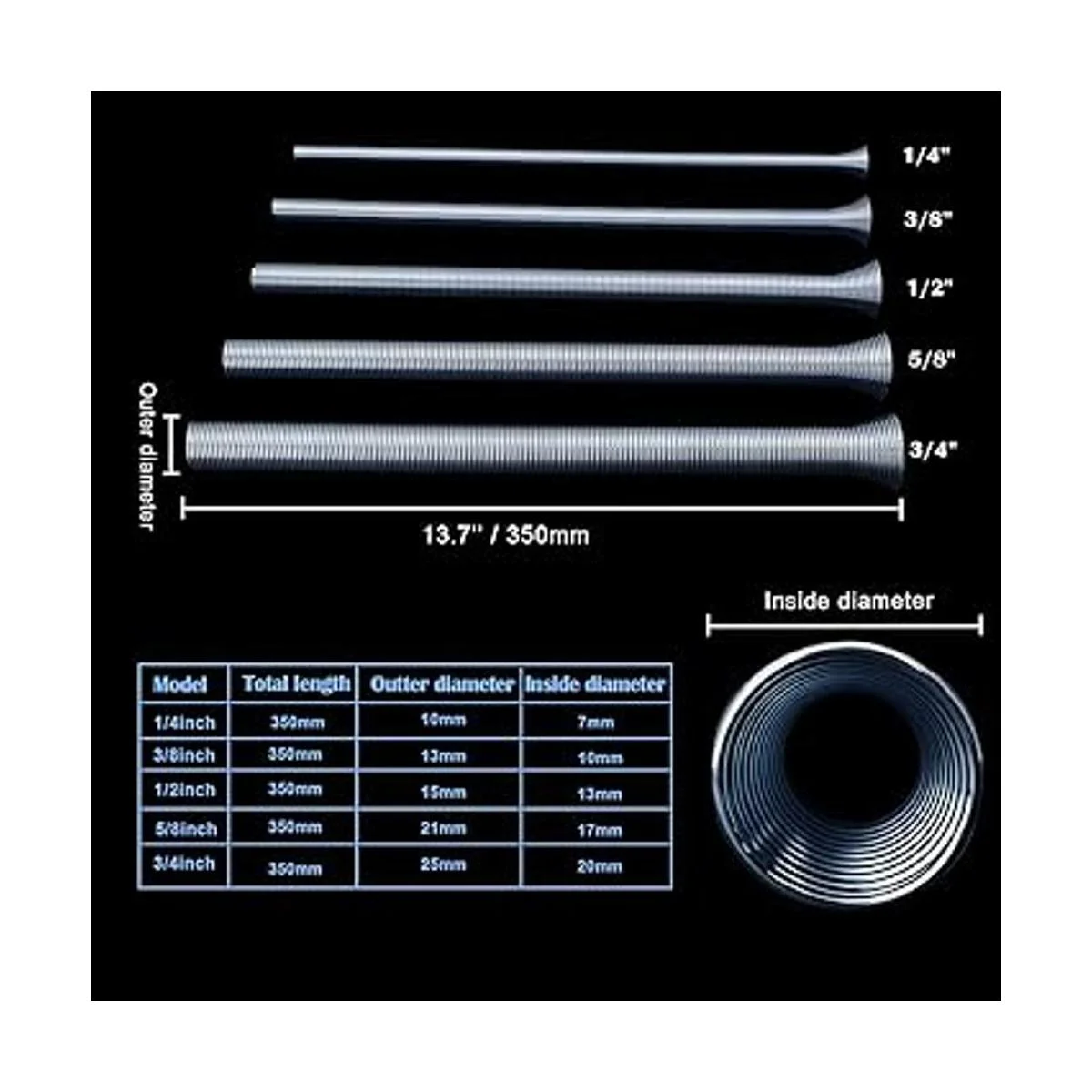 PHITUODA Juego de dobladores de tubos de resorte de 14 pulgadas, 38 pulgadas, 12 pulgadas, 58 y 34 pulgadas, para tubos de cobre, aluminio y acero de pared delgada, 13.780 in de longitud, paquete de 5