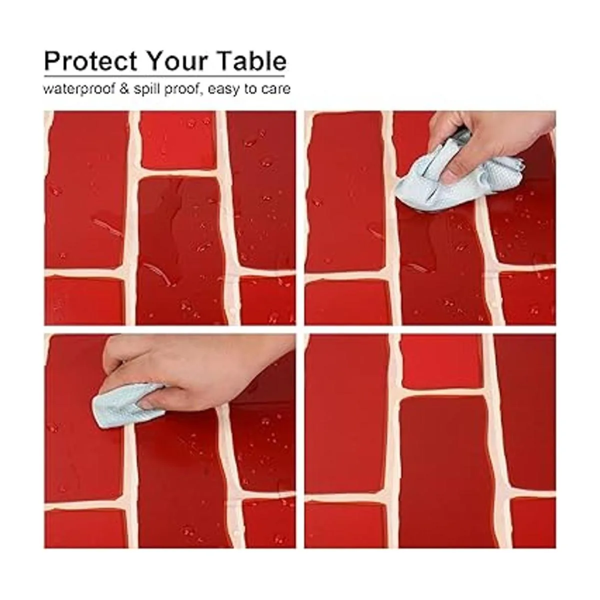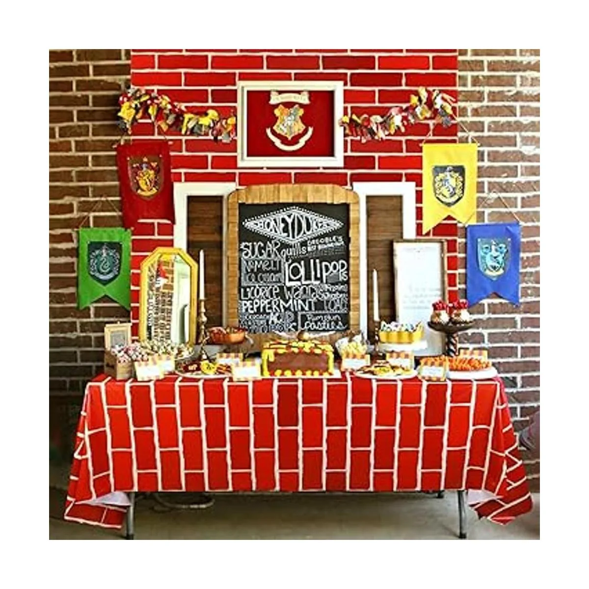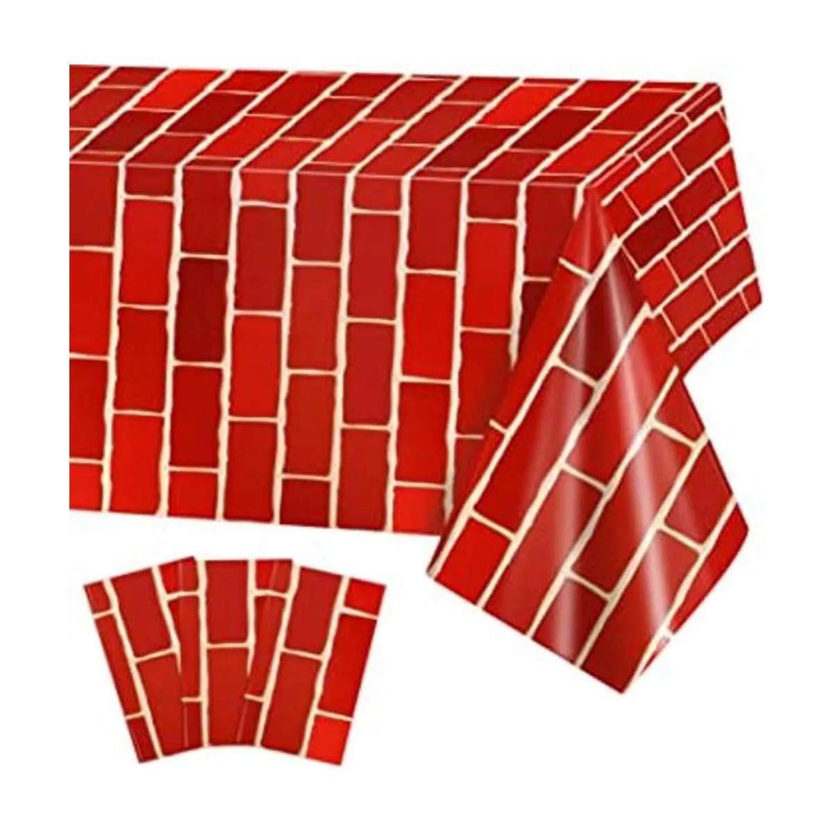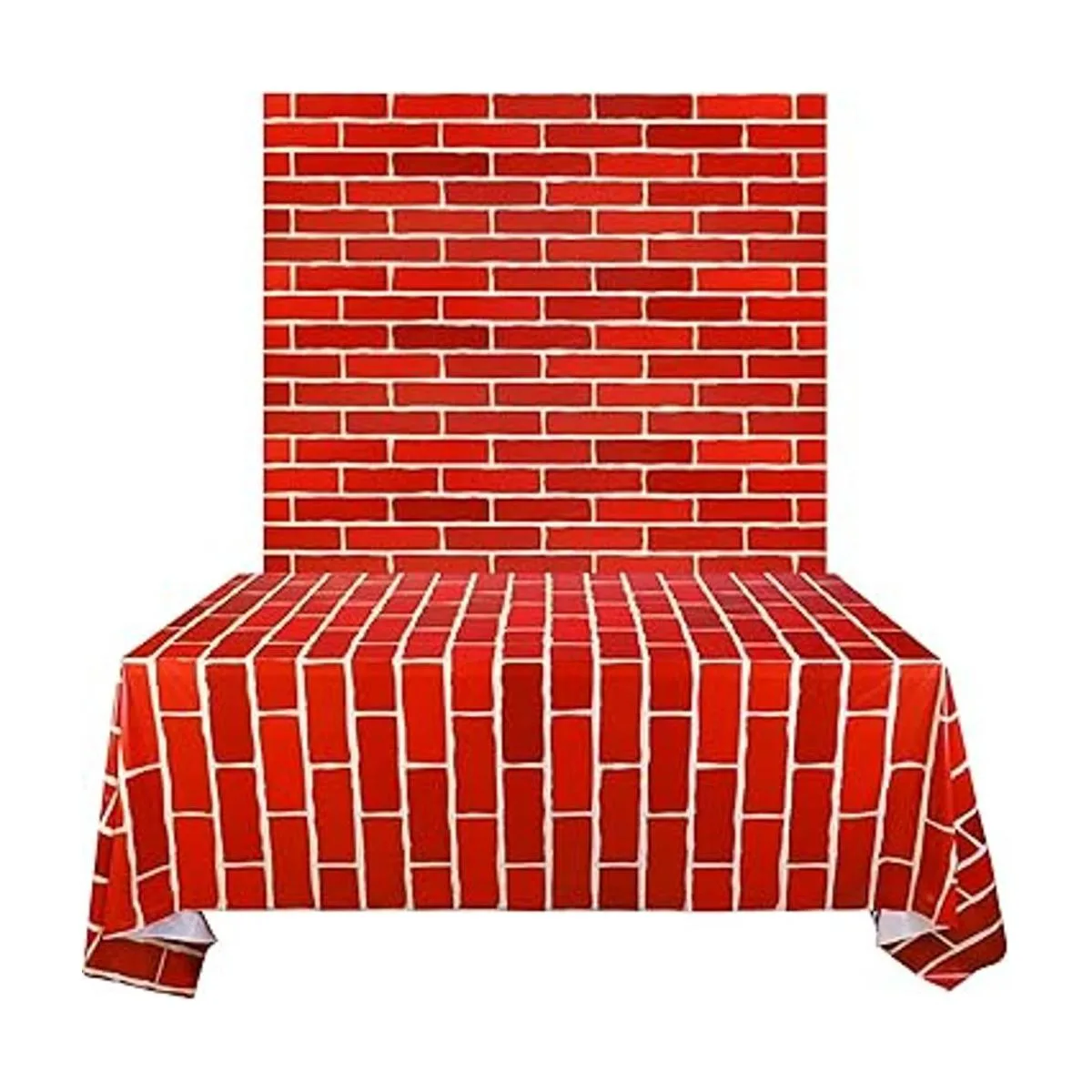 Manteles de pared de ladrillo: 3 manteles con estampado de ladrillo rojo que miden 51.2 x 107.9 in, para múltiples mesas y configuraciones. Los diseños de ladrillo de piedra son ideales para decoraciones de fiesta de disfraces de Halloween, decoraciones de pared de Navidad, cumpleaños de niños, bodas de castillo y manteles de mesa de fiesta de baby shower.
