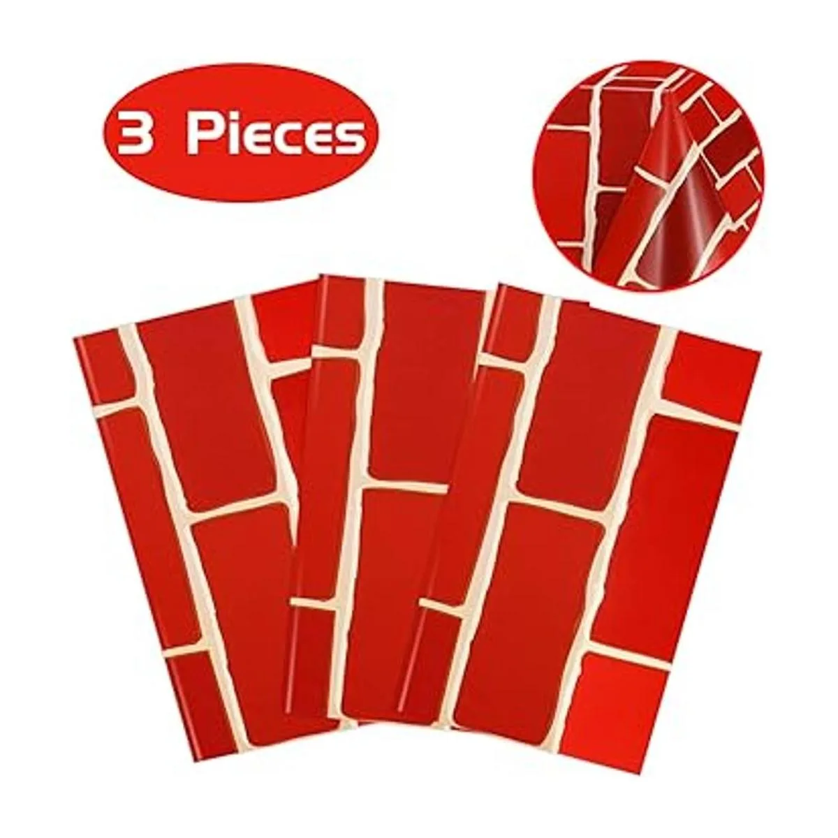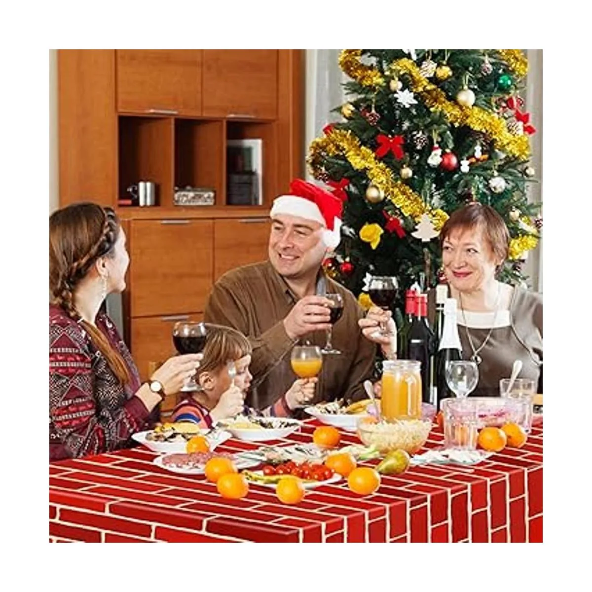 PHOGARY 3 manteles de ladrillo rojo, telón de fondo de pared de piedra, decoraciones de Navidad, fundas de mesa rectangulares de plástico desechables, fondo de calcomanía de ladrillo para invierno, Halloween, fiesta de Navidad