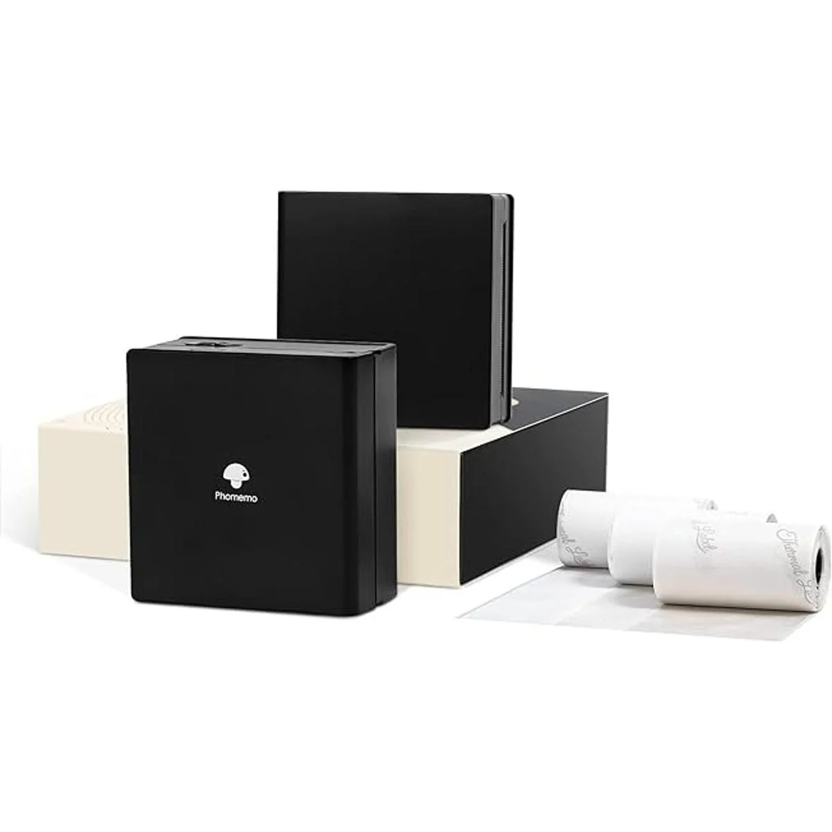 Phomemo Mini impresora de notas, mini impresora térmica Bluetooth M02 con 3 rollos de papel, para imprimir fotos, texto, notas de estudio, calcomanía de bricolaje, regalo, negro