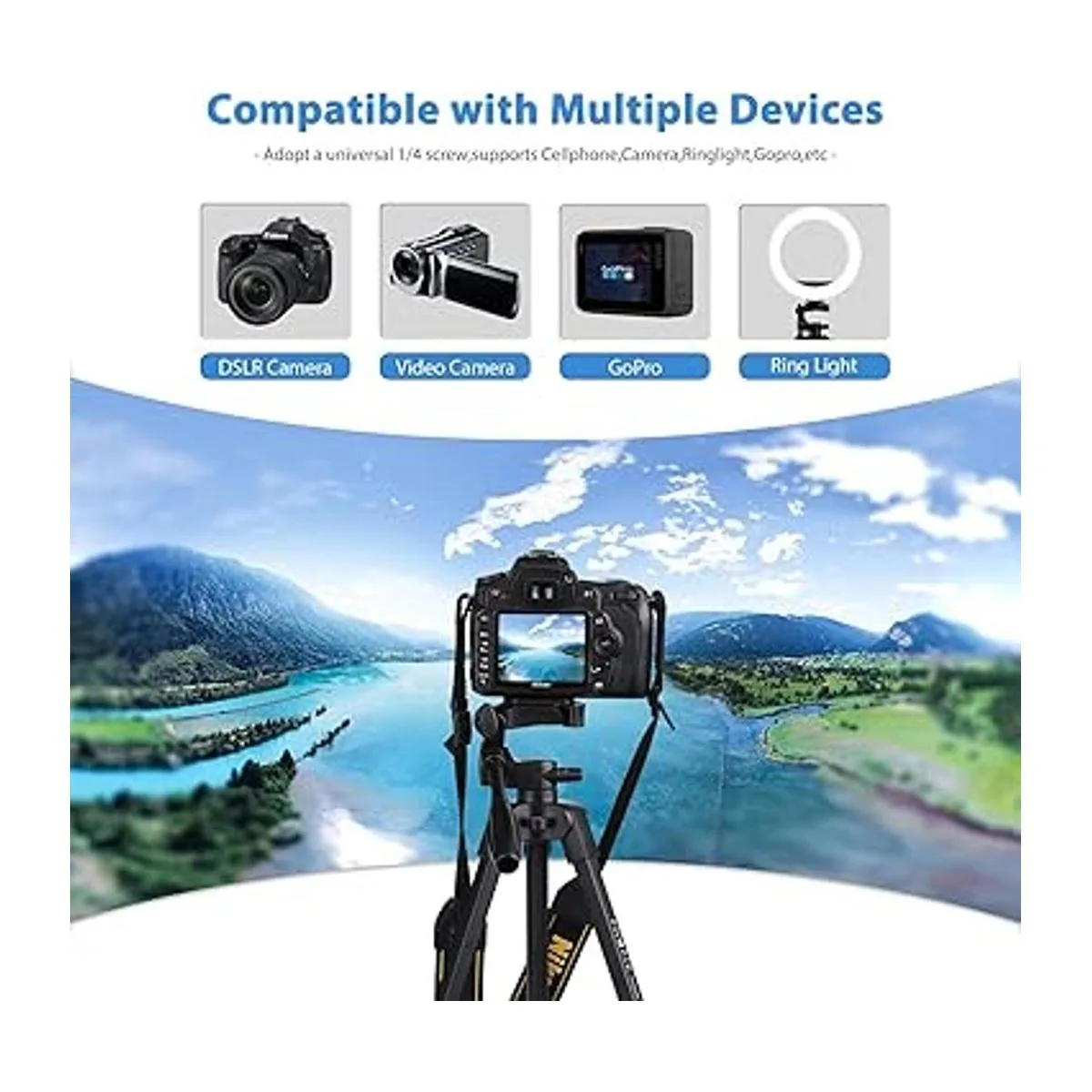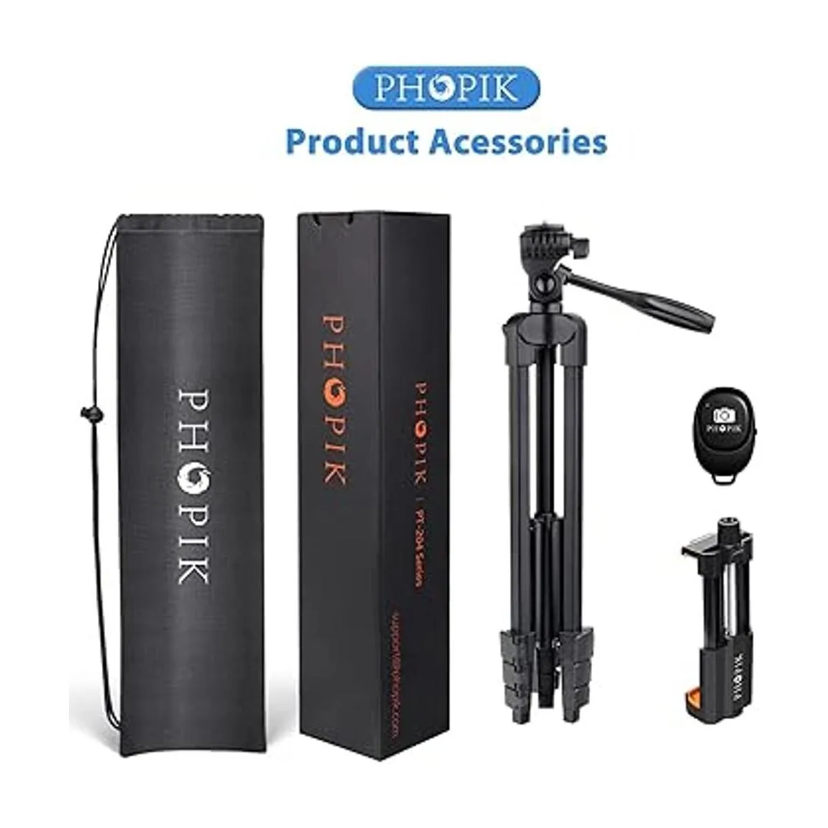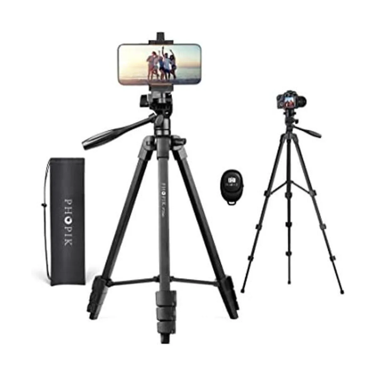 PHOPIK Trípode ligero para teléfono de 55 pulgadas, trípode de video con 360 panorámicas y tornillo de montaje de 14 pulgadas para cámara sin espejo, GoproDSLR, soporte para teléfono inteligente, carga máxima de 6.6 libras, bolsa de transporte incluida