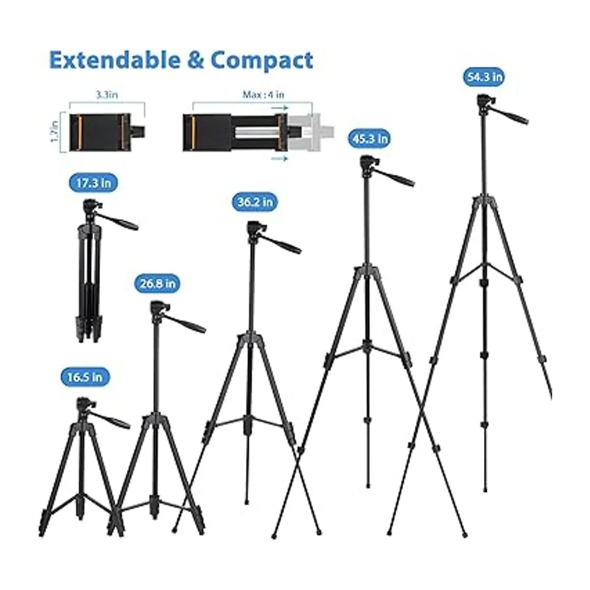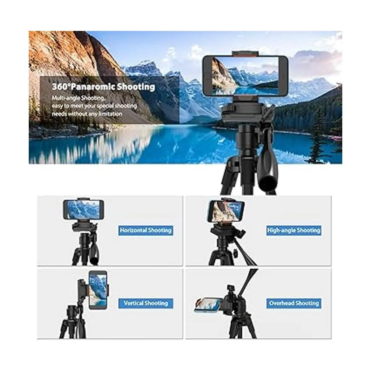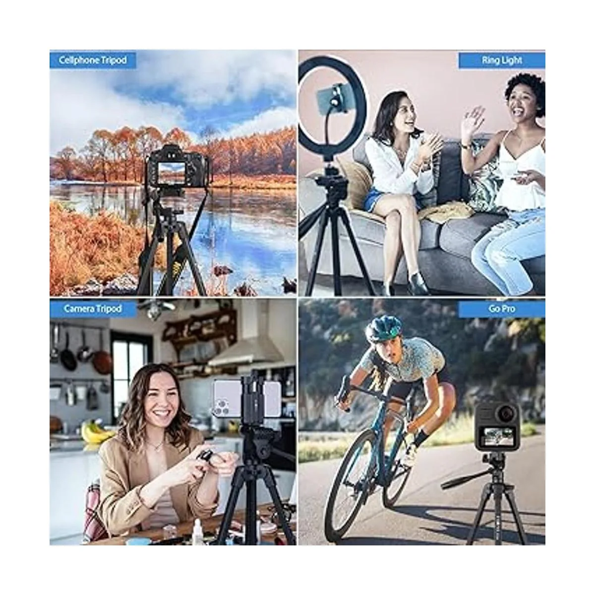 PHOPIK Trípode ligero para teléfono de 55 pulgadas, trípode de video con 360 panorámicas y tornillo de montaje de 14 pulgadas para cámara sin espejo, GoproDSLR, soporte para teléfono inteligente, carga máxima de 6.6 libras, bolsa de transporte incluida