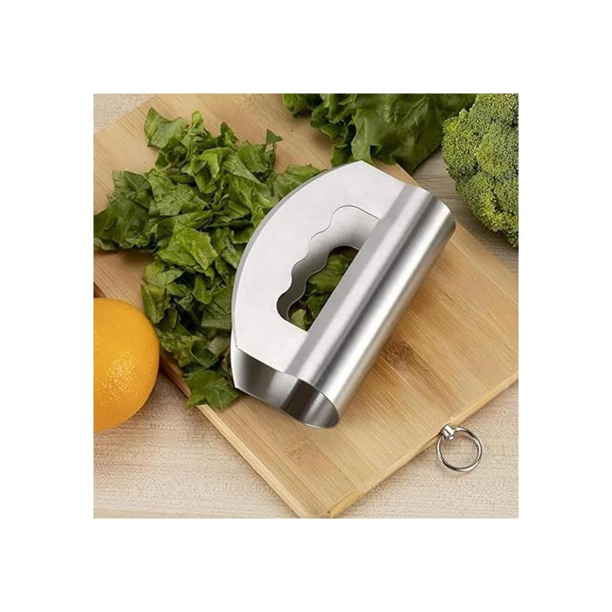Picador de cuchillos de ensalada con cubierta protectora, cortador de ensalada de acero inoxidable, cuchillo de cortar de doble cuchilla, picador de ensalada Mezzaluna para picar ensaladas y verduras