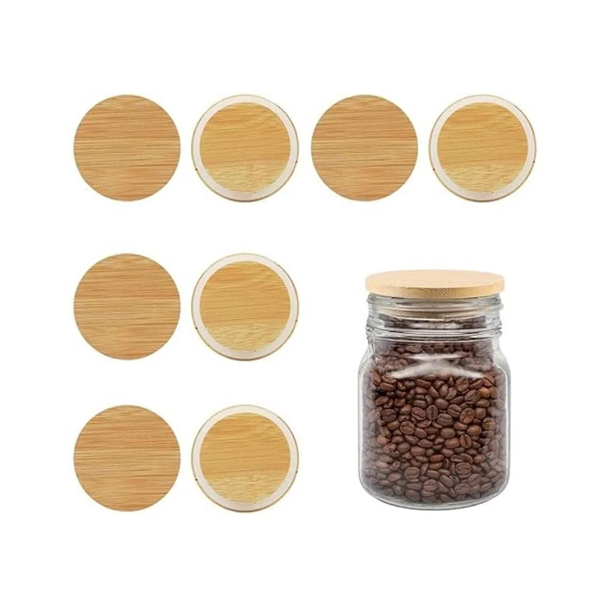 El paquete incluye: 8 tapas de tarros de bambú de boca estándar Picowe