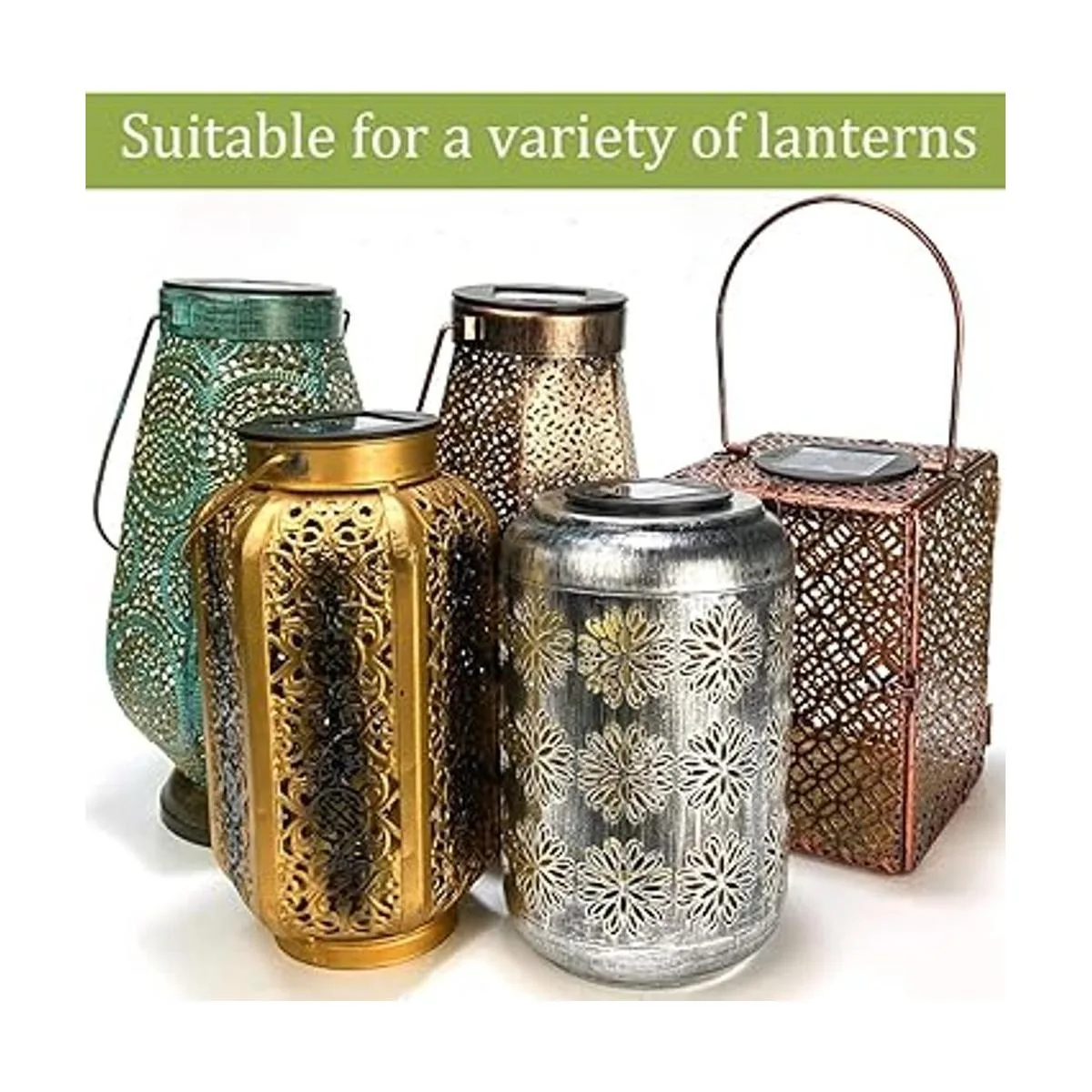 Parte superior de repuesto de luz solar mejorada: Forma el diseño de la tapa superior para evitar que la lluvia moje el circuito de la bombilla. Perfectamente adecuado para linternas colgantes de jardín al aire libre y nuevas manualidades. Los insertos de luz solar HELESIN son adecuados para la mayoría de linternas. Elige el tamaño que necesitas. Tamaño superior de repuesto: 3.15 pulgadas diámetro exterior x 0.74 pulgadas de alto