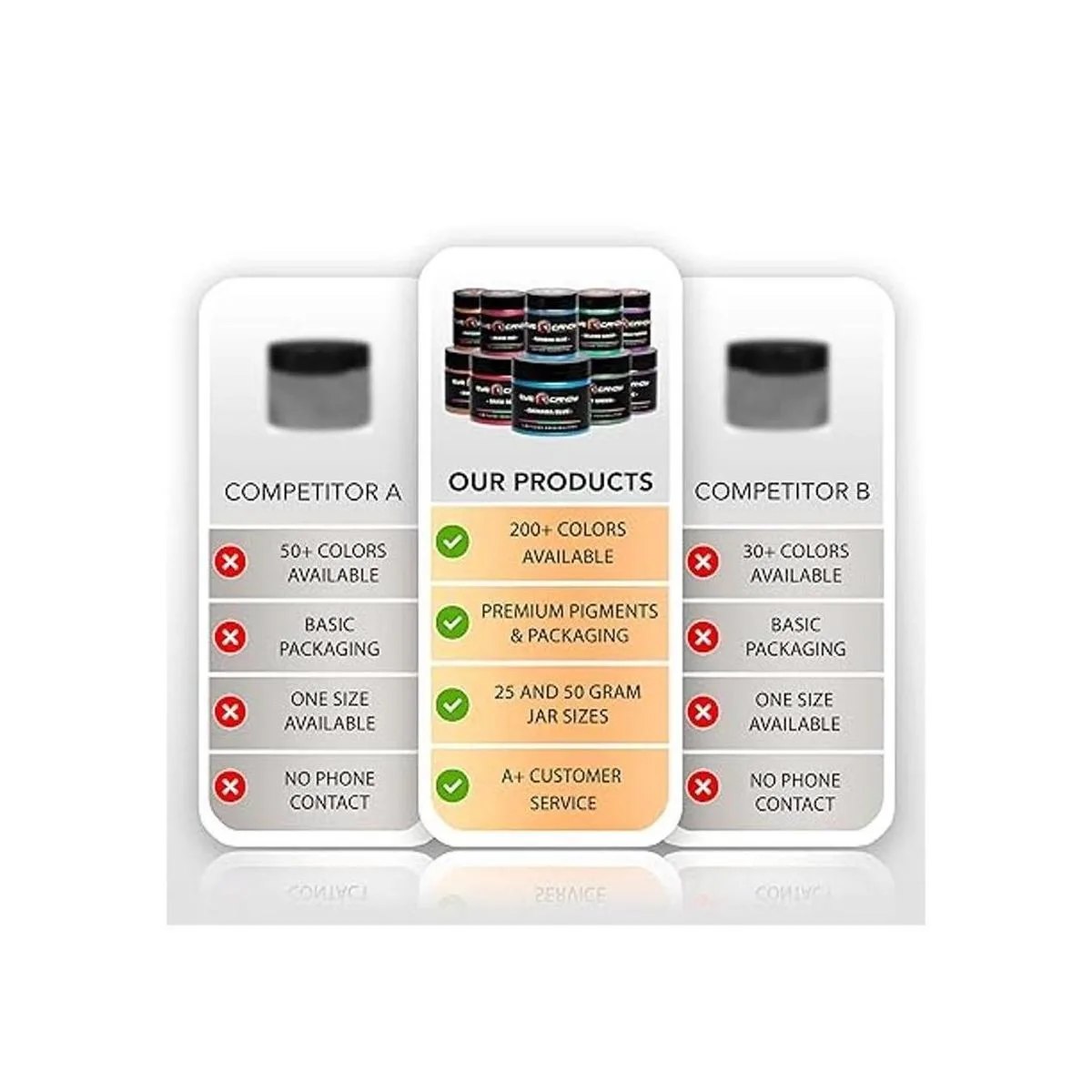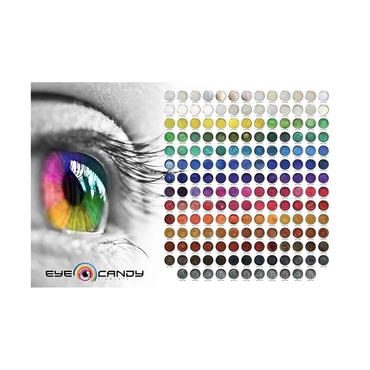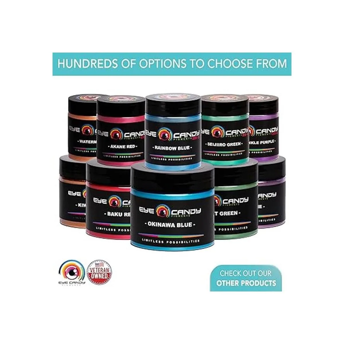 Pureza ultrafina: las perlas de mica de Eye Candy son de 10 a 60 micras de tamaño, para que se mezclen mejor con resinas, laca, epoxi, esmalte de uñas, látex, cosméticos, pintura automotriz, lociones, cremas, arcilla polimérica, barnices, esmaltes y otros artículos de uso personal.