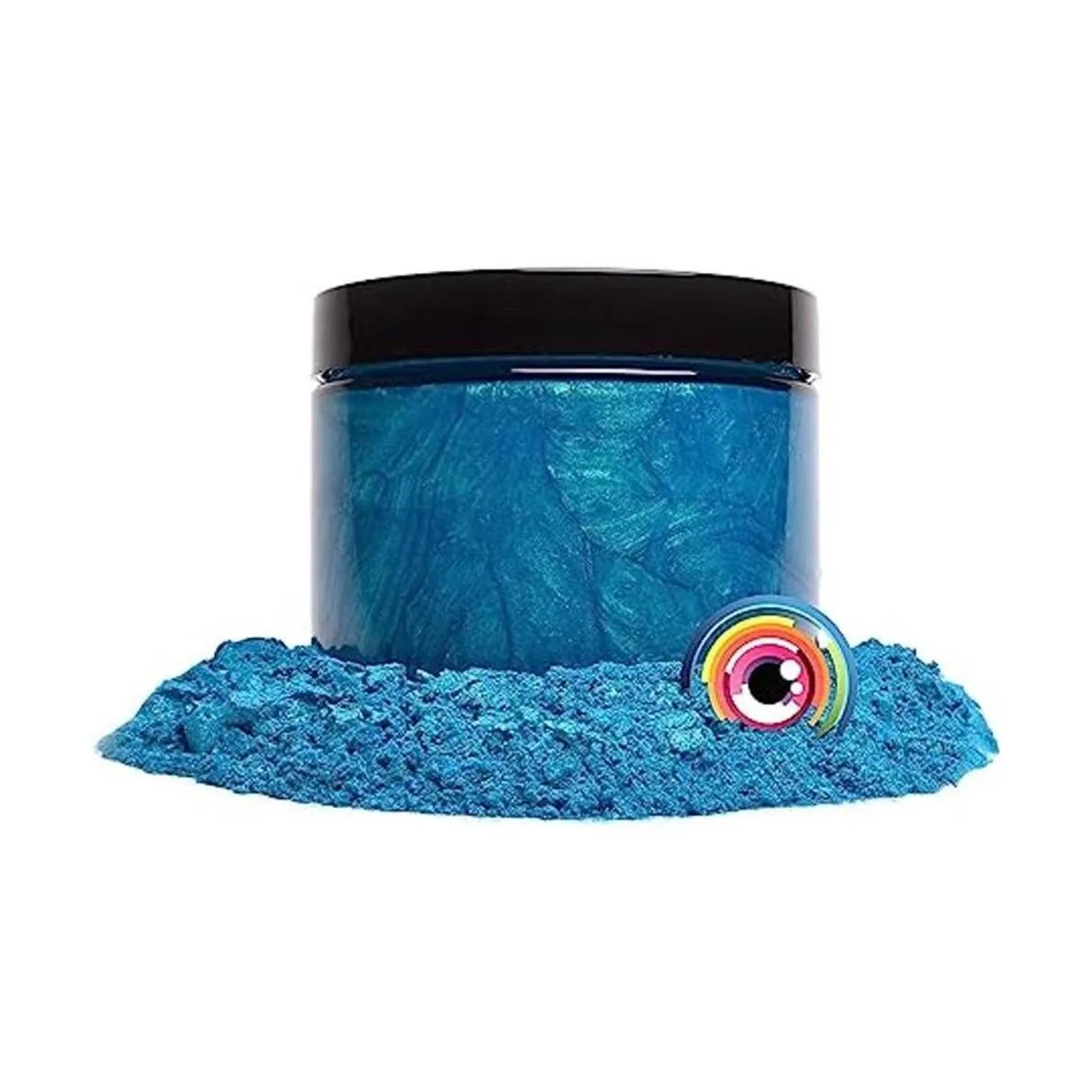 Polvo de mica azul multiusos: un azul con un toque de dióxido de titanio verde, este polvo mineral de mica es ideal para uso artesanal, como plásticos, fabricación de slime, bombas de baño caseras y joyas, derretir y verter, bálsamo labial, pintura acrílica, serigrafía, fabricación de velas y mucho más.