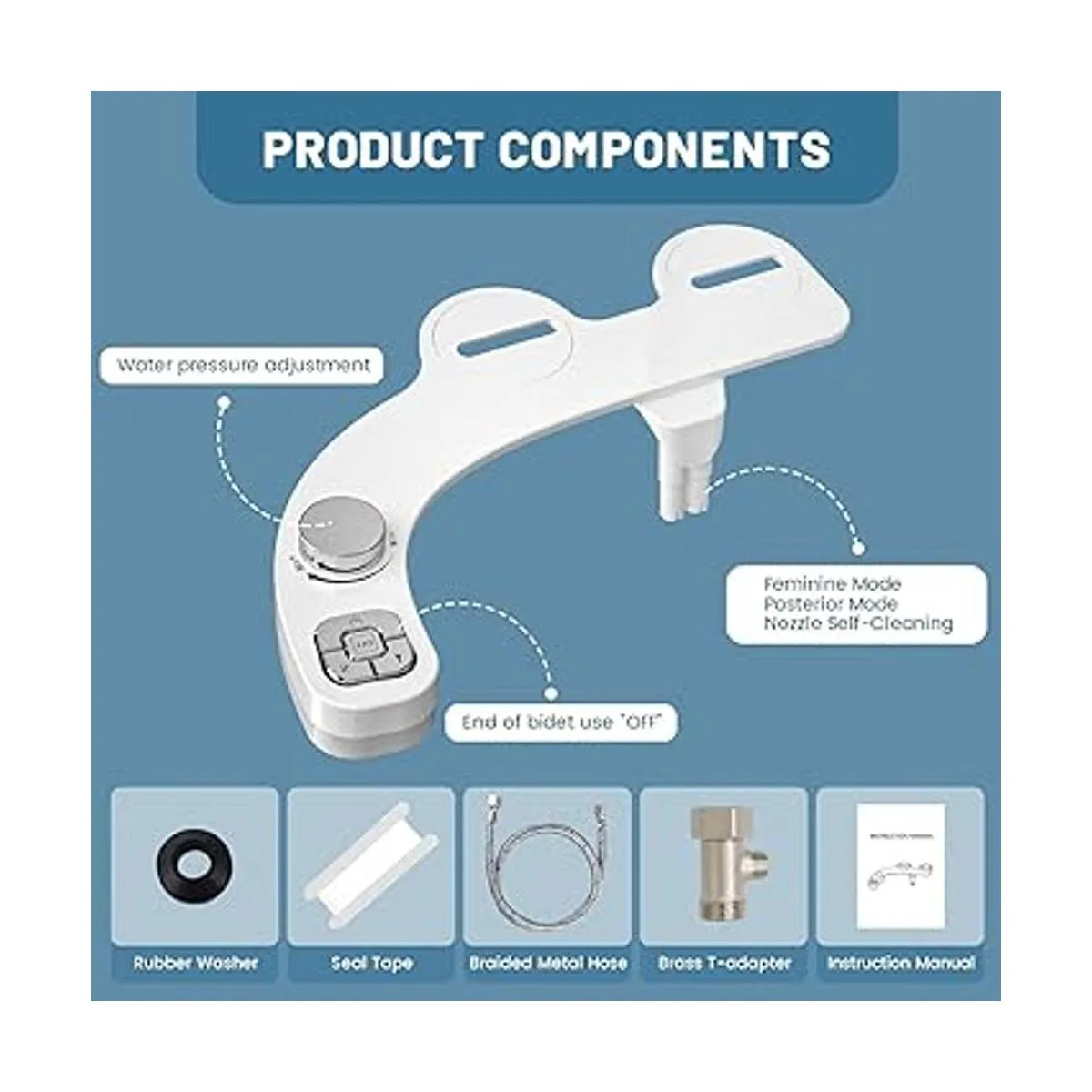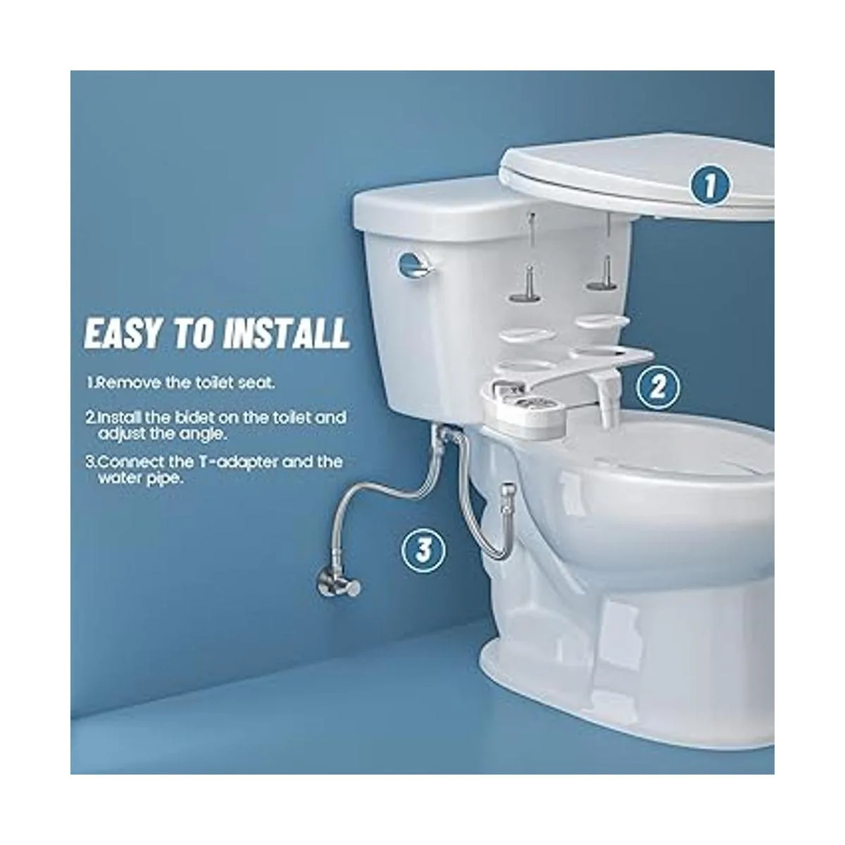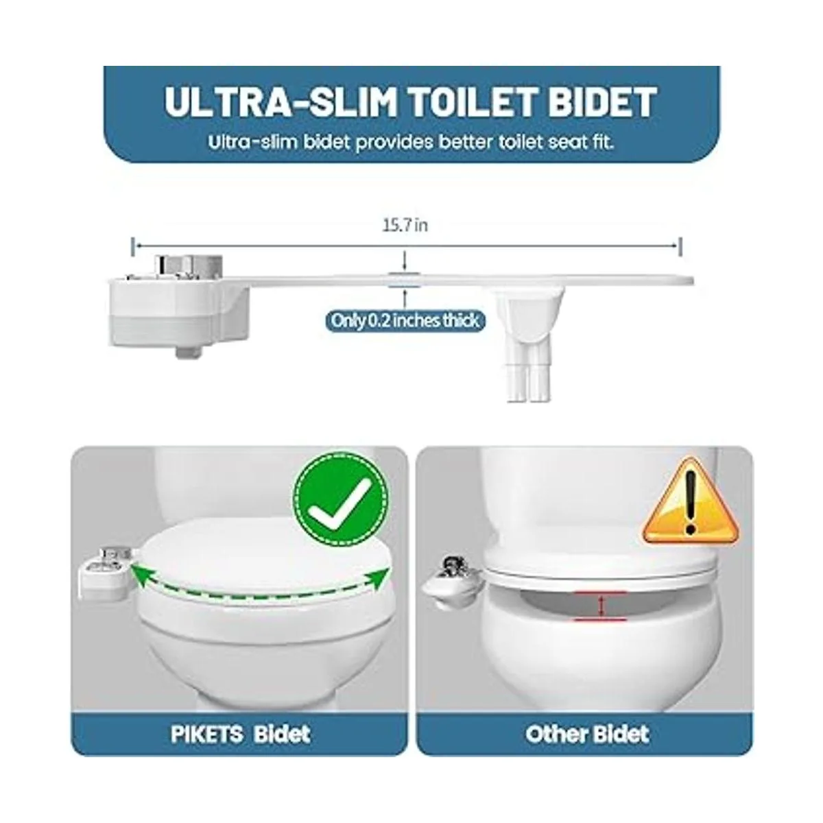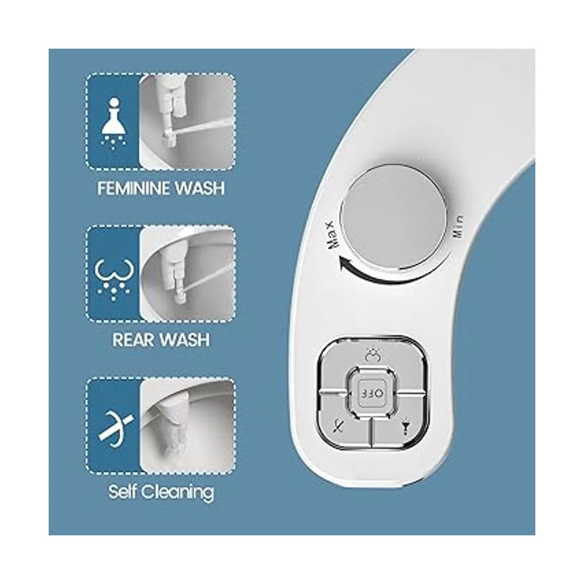 PIKETS Accesorio de bidé para inodoro, boquilla doble lavado frontal y trasero no eléctrico, accesorio de asiento de inodoro con boquilla autolimpiante, presión de agua ajustable 02cromo plateado
