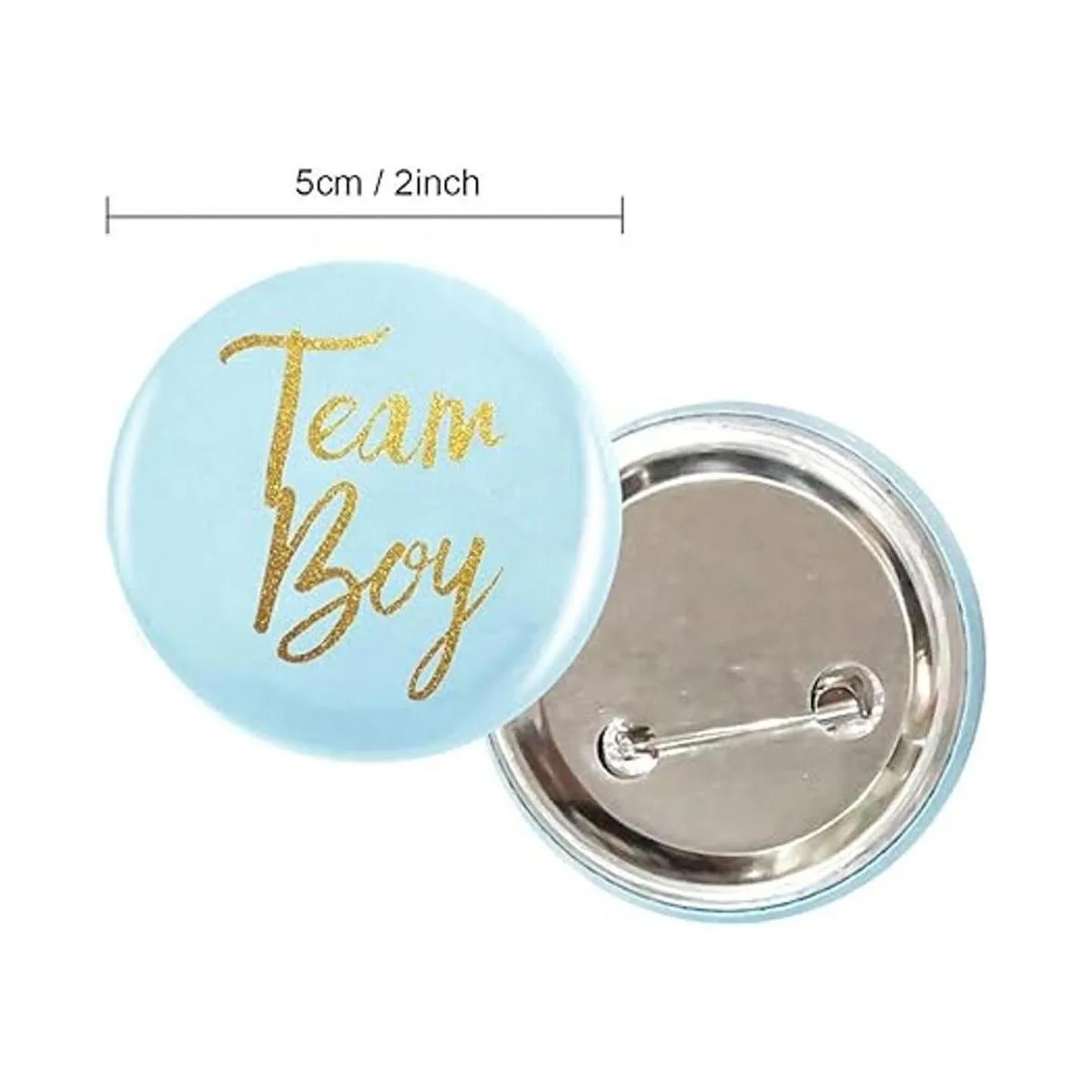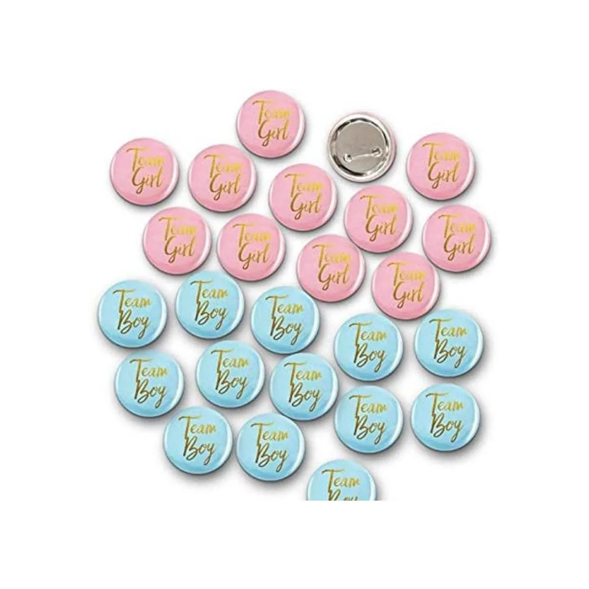 Pin de botón de revelación de género: el total de 50 pines de botón incluye 25 botones rosa Team Girl y 25 botones azules Team Boy.