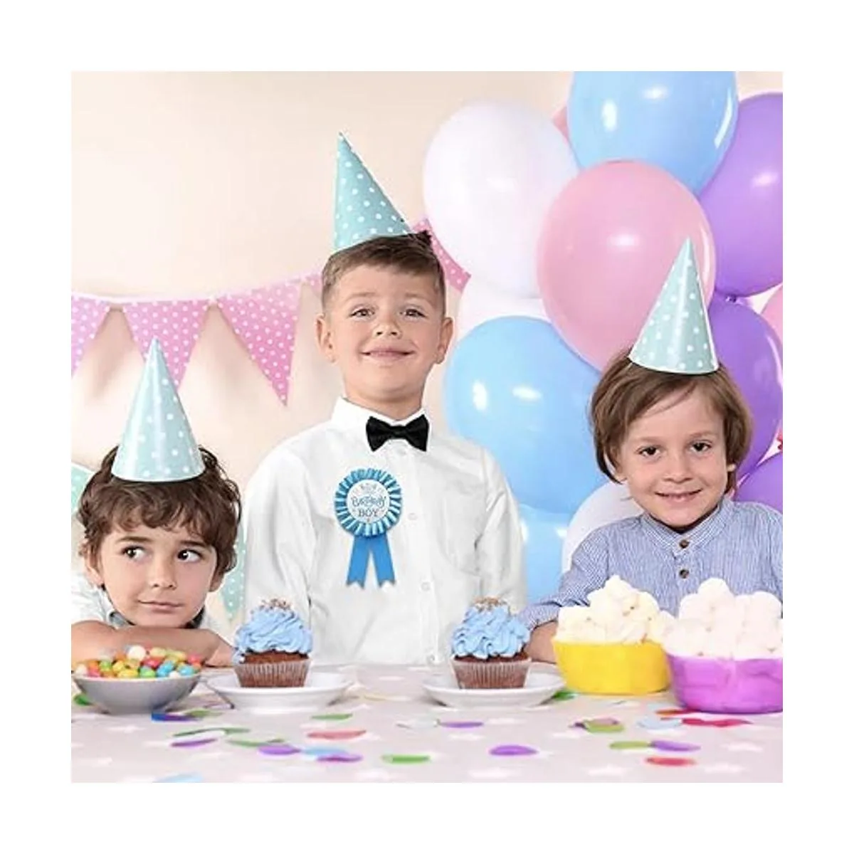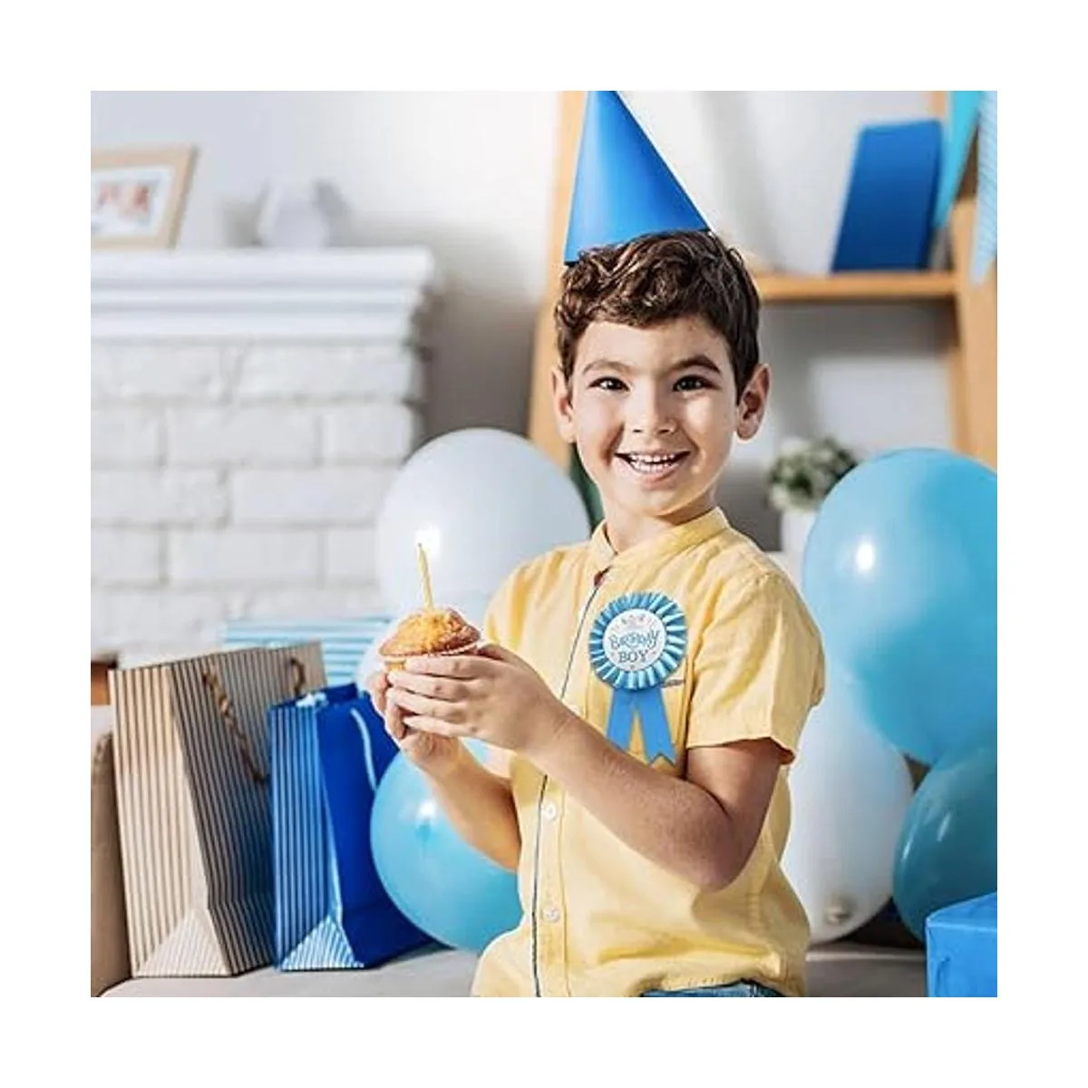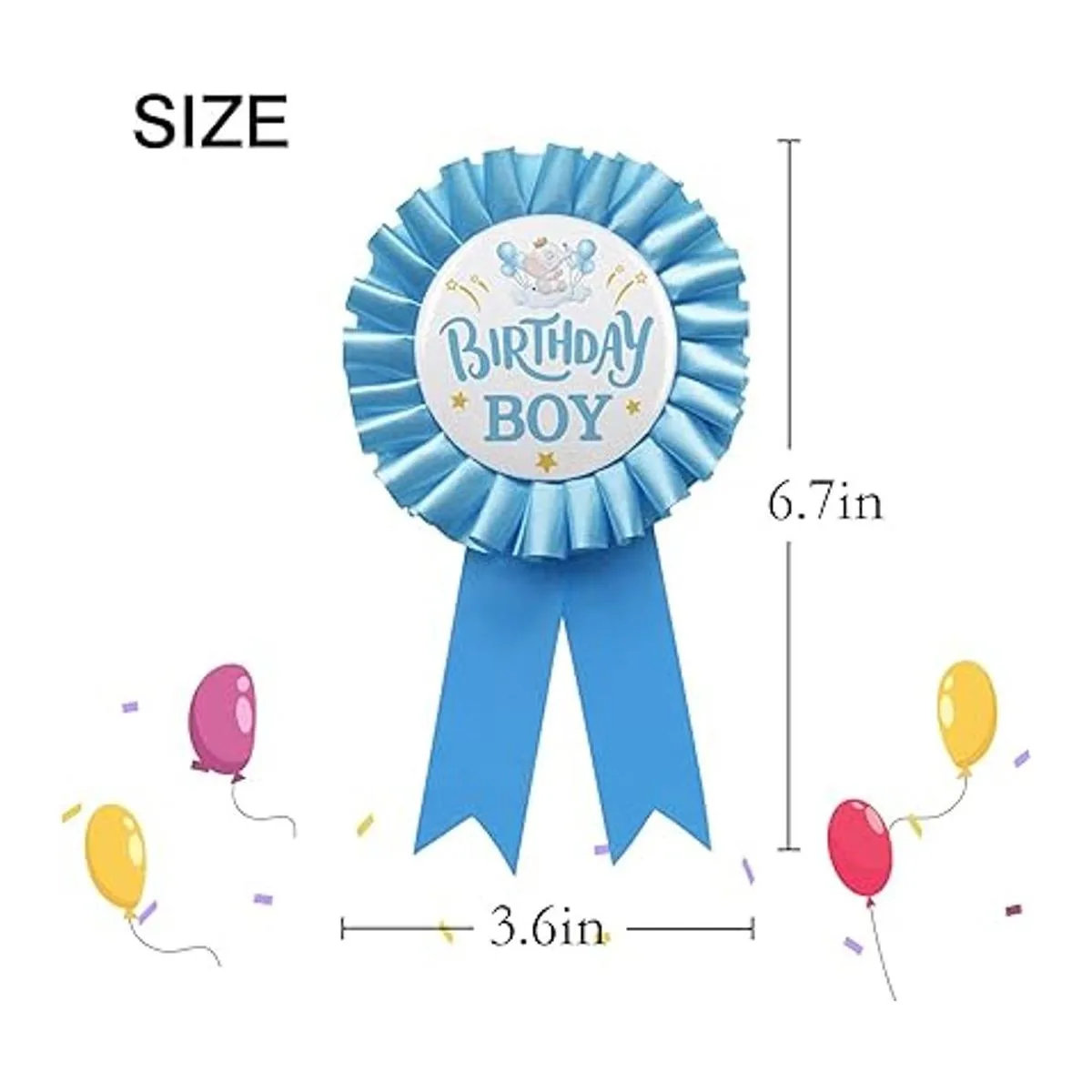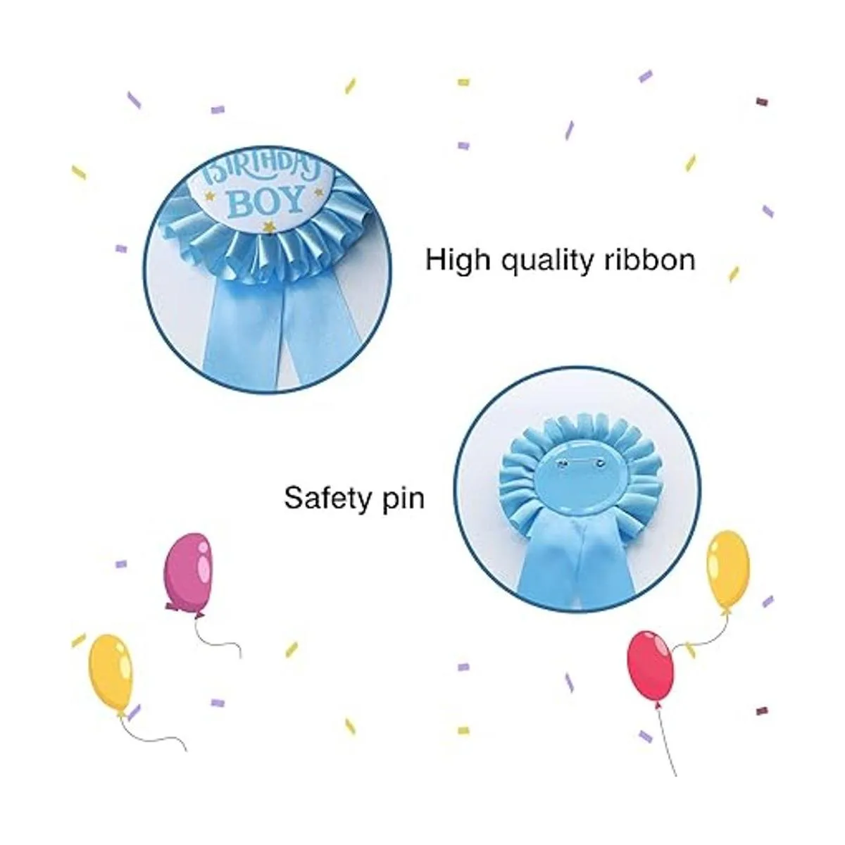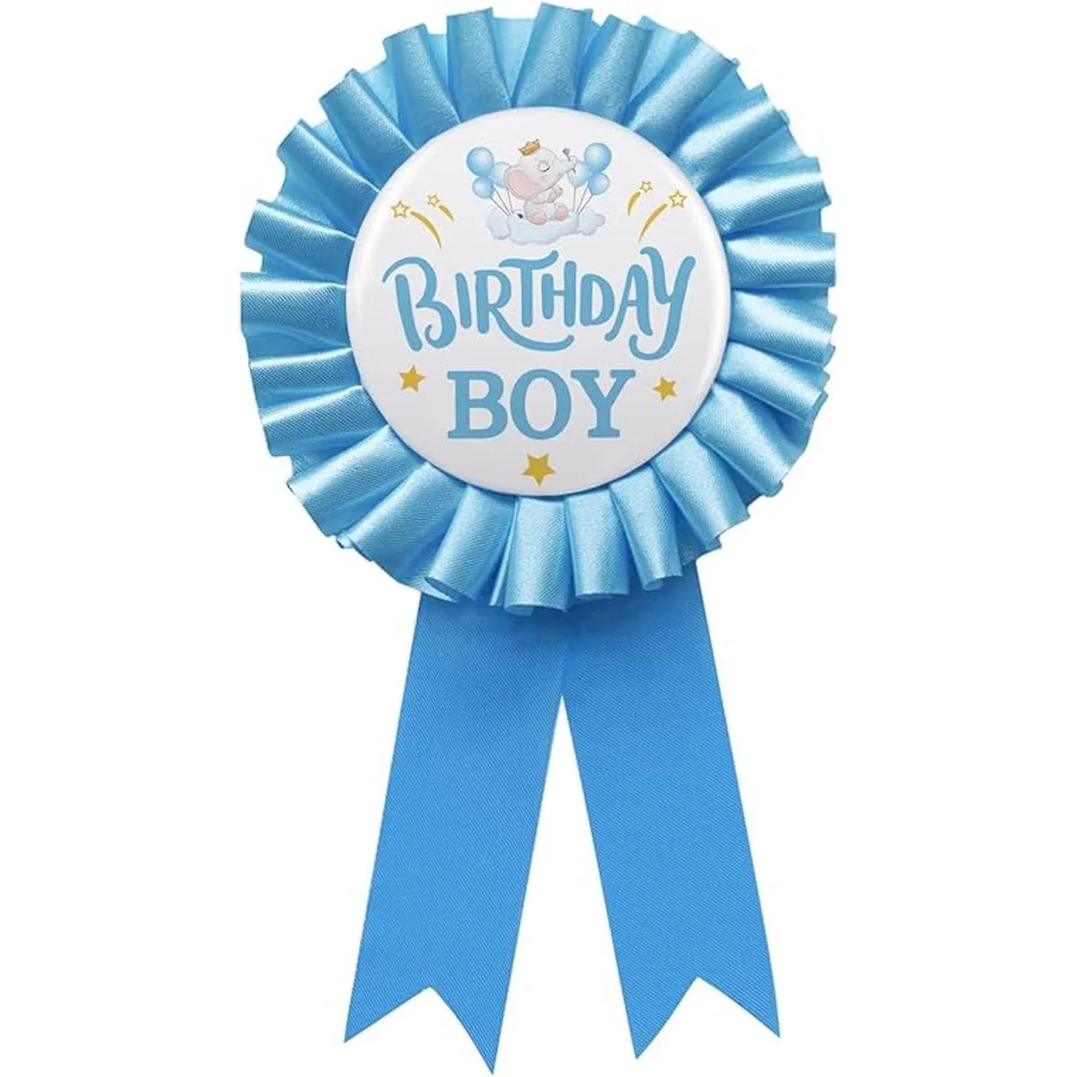 Pin de insignia de hojalata de cumpleaños, regalo de cumpleaños para niños, cinta de premio para bebé, broches de botón de roseta, suministros de decoración de fiesta, azul claro, 1 unidad