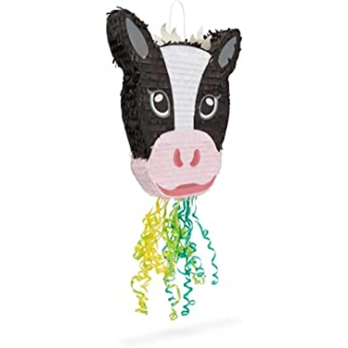Suministros de fiesta de cumpleaños de granja: Impresiona a tus invitados con un tema festivo y un divertido juego de fiesta en una próxima fiesta de cumpleaños de granero infantil con esta piñata de cuerda de vaca