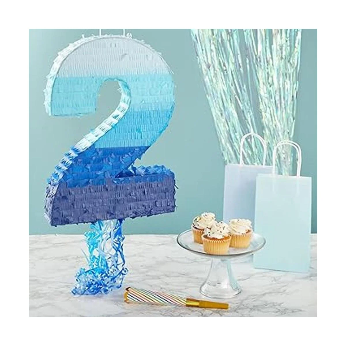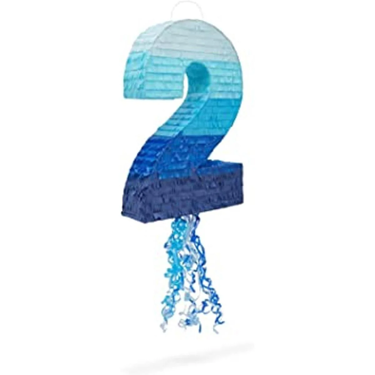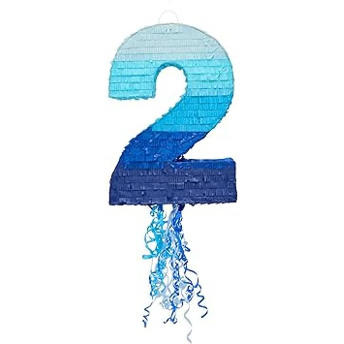 Piñata de cuerda número 2 para niño 2ª fiesta de cumpleaños, azul Ombre (16.5 x 11.5 pulgadas)