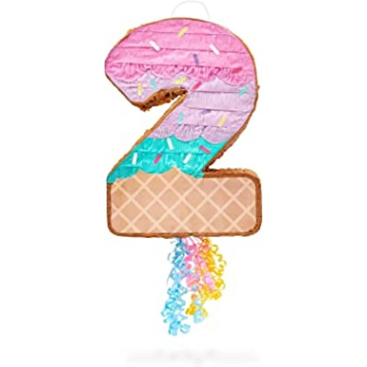 Piñata de helado número 2 para dos dulces fiestas de segundo cumpleaños, cuerda de tracción 13 x 16.5 pulgadas