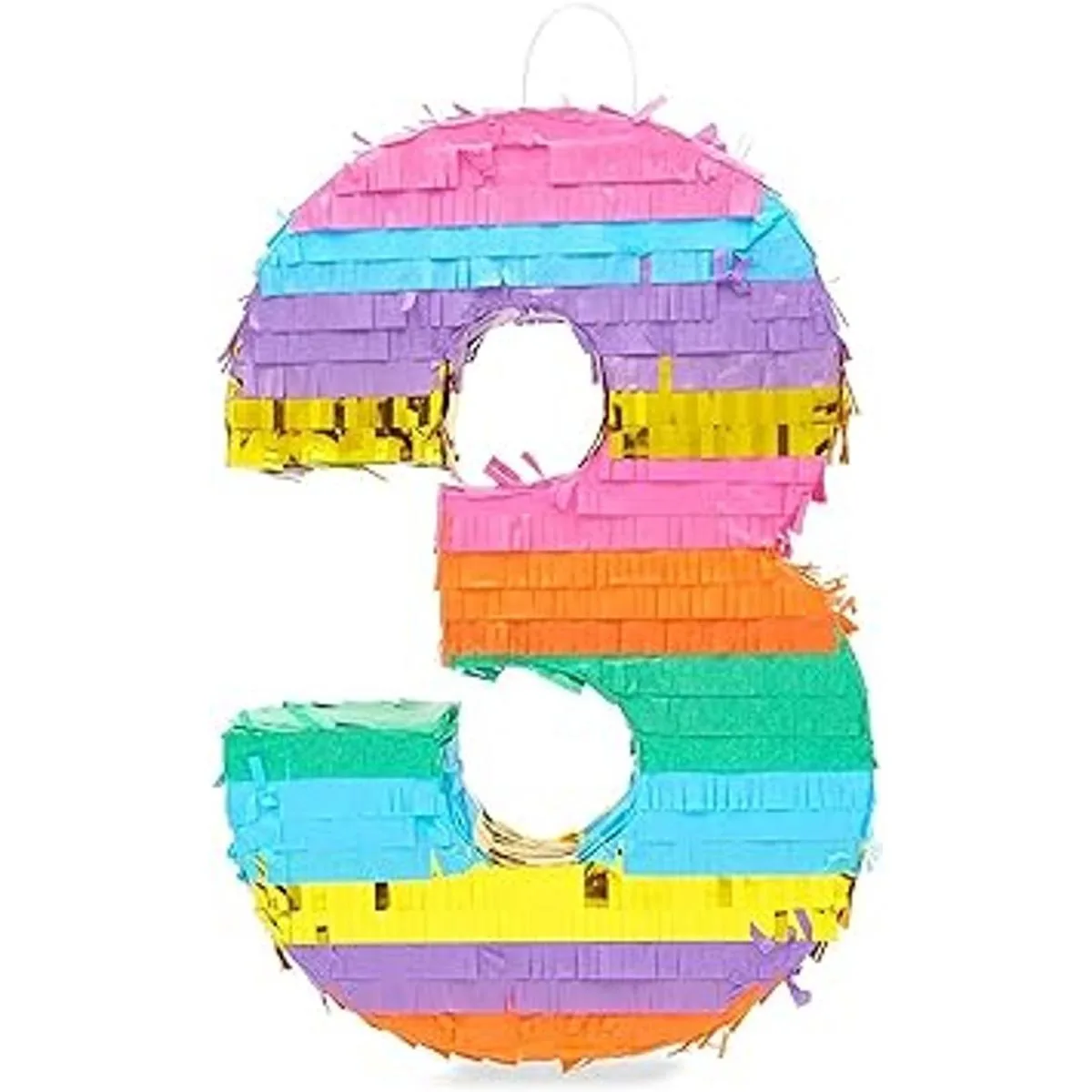 Piñata pequeña de arcoíris número 3 para fiesta de cumpleaños de 3 años 11.4 x 16.5 x 3 pulgadas