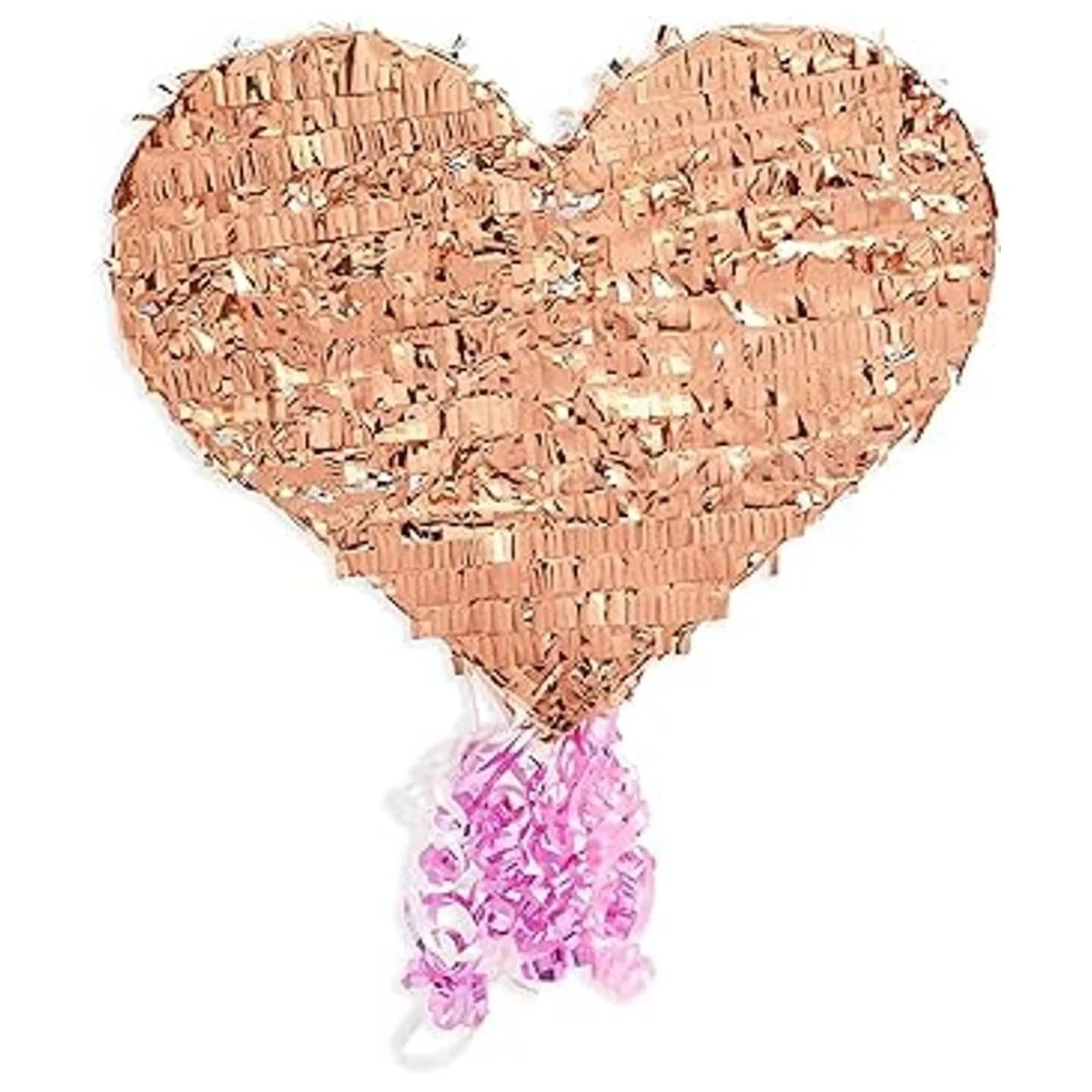 Piñata pequeña de cuerda de corazón para San Valentín 15.7 x 13 pulgadas, oro rosa