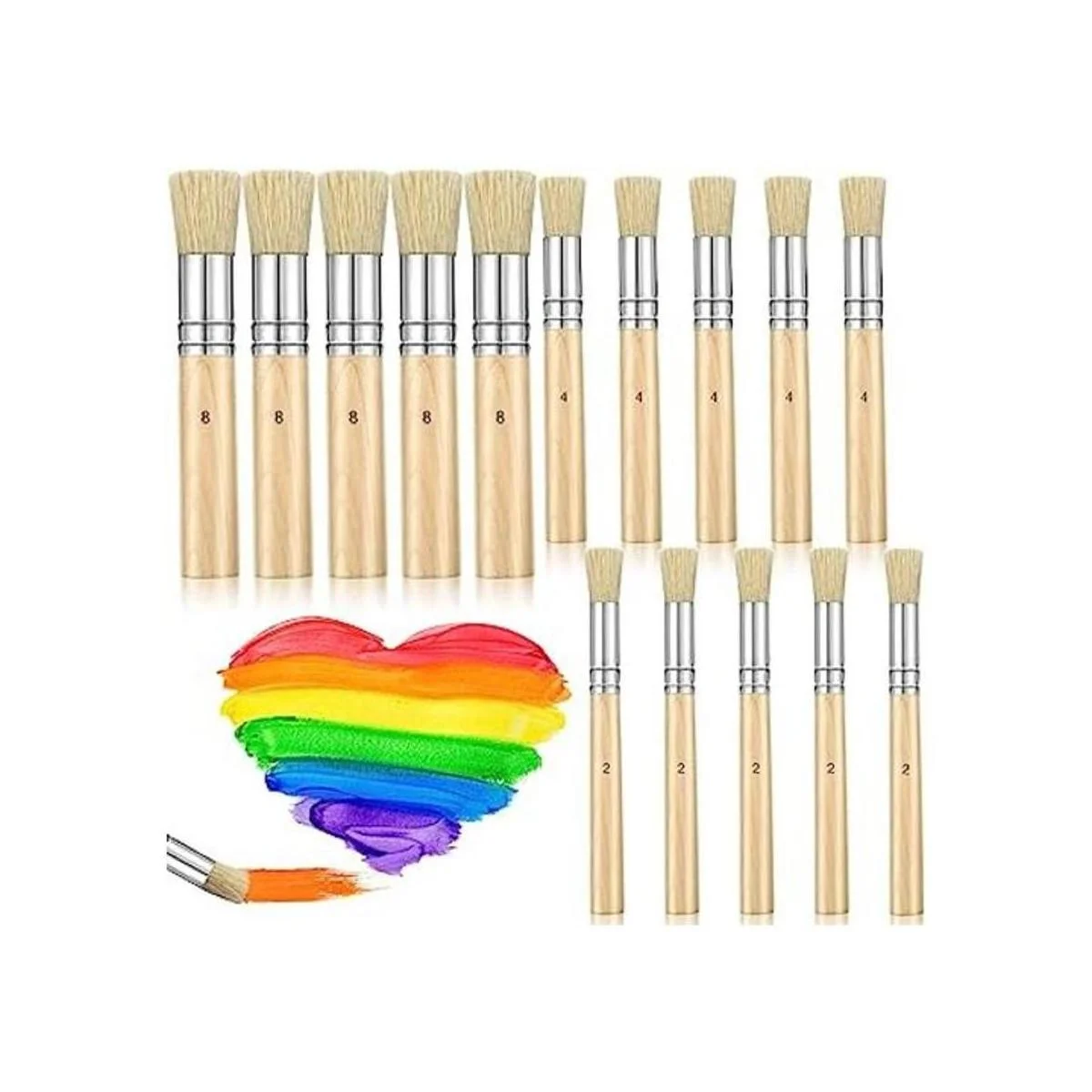 Pinceles de madera para plantilla natural, pinceles, mango de madera, para pintura acrílica, acuarela, proyectos de manualidades, 3 tamaños (18 piezas)