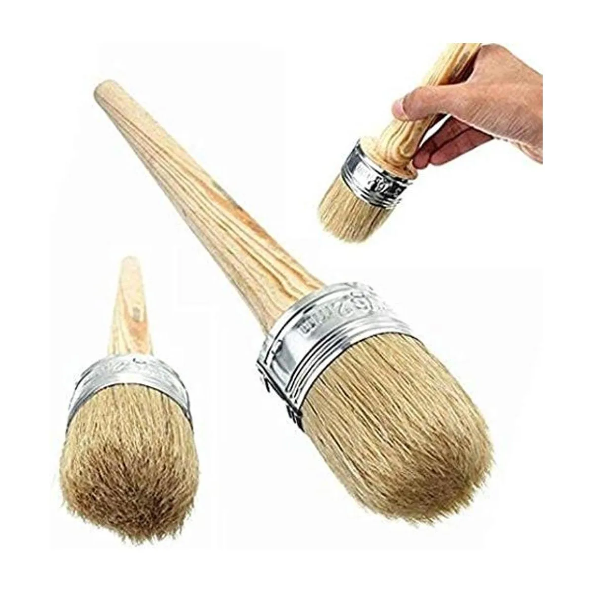 Pinceles de pintura profesional para tiza y cera, paquete de 2 pinceles de pintura redondosherramienta de depilación para arte popular, decoración del hogar, proyectos de madera, muebles, plantillas cerdas naturales reutilizables