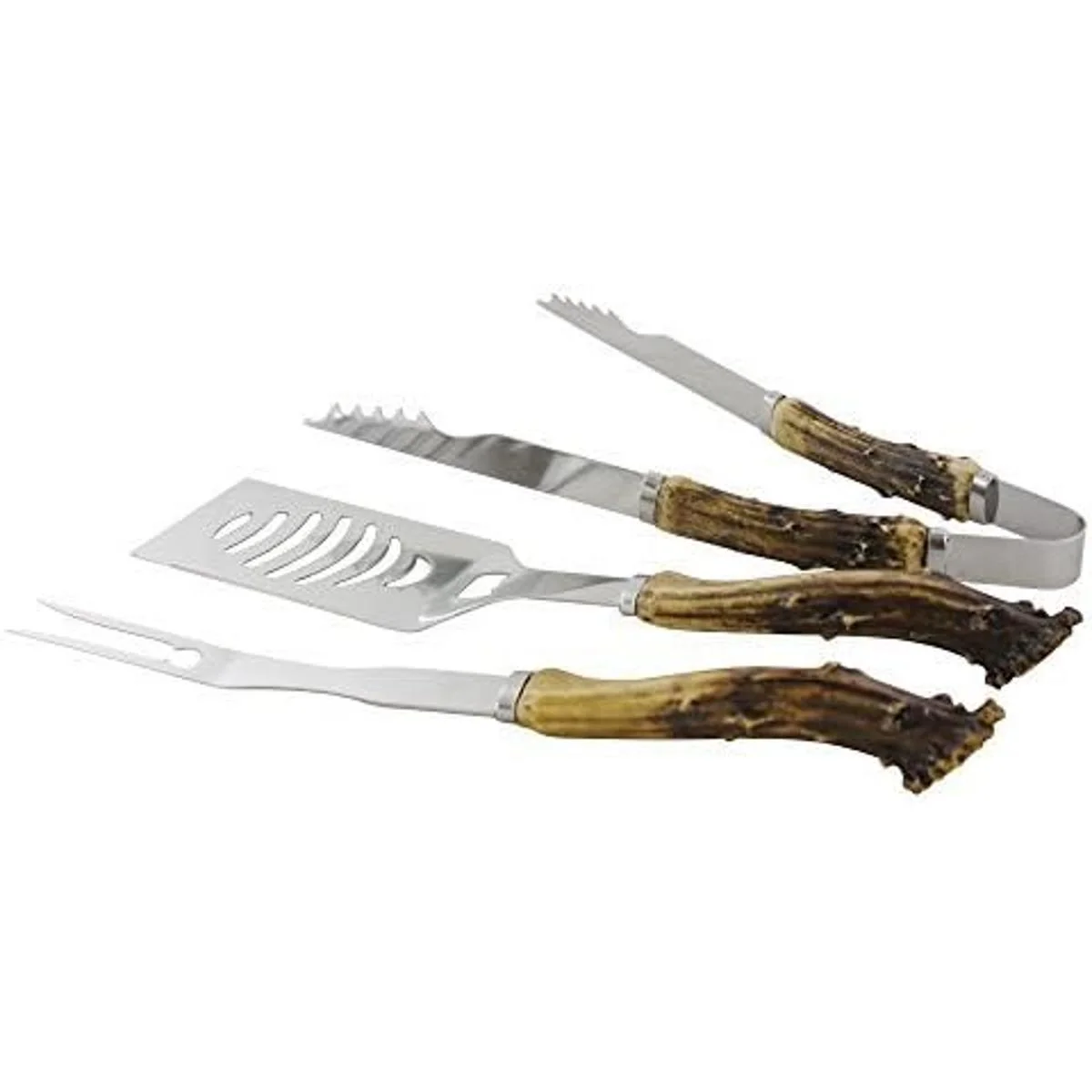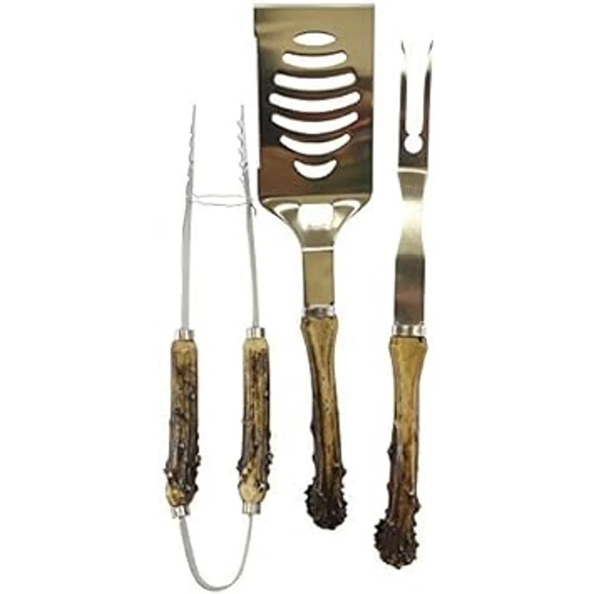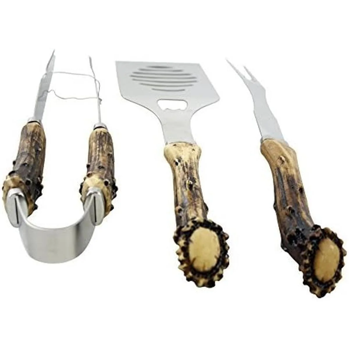 Alta calidad: Hecho de acero inoxidable, este juego de barbacoa cuenta con asas de cuerno de venado de aspecto auténtico que son ideales para sujetar y que realmente recuerdan a las actividades al aire libre. Este juego de 3 herramientas de barbacoa es de alta calidad, bien construido y cuenta con un gran estilo al aire libre.