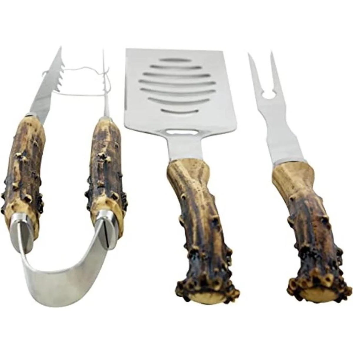 Regalo perfecto para el tipo de persona de exterior robusto: El juego de parrilla con mango de cuerno es diferente, único y atractivo para el cazador y aventurero interior de todos con sus impresionantes asas de cuerno de ciervo.