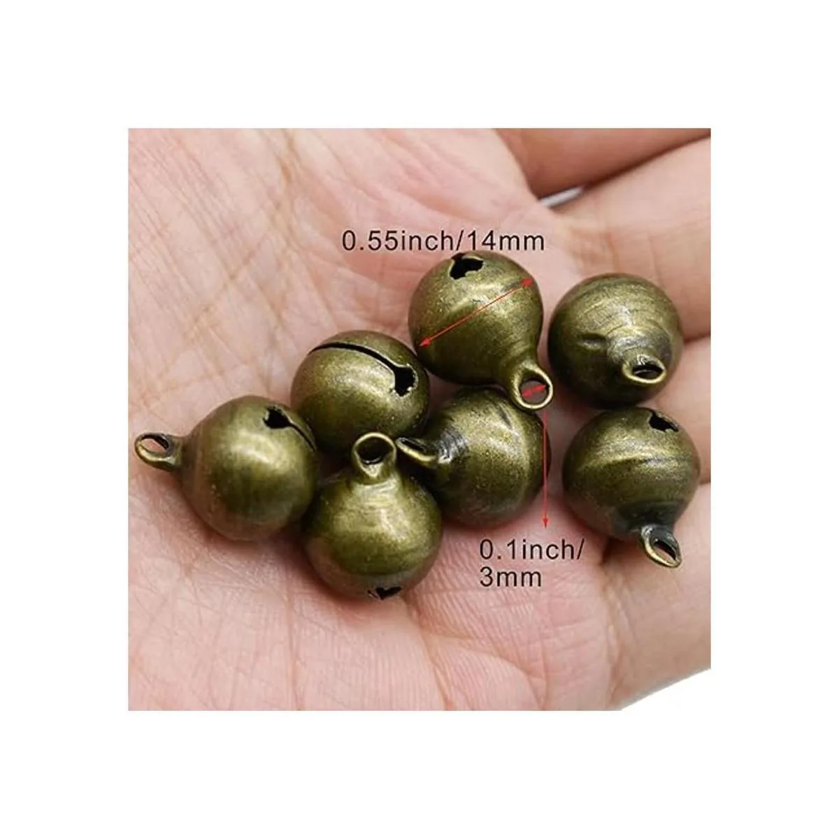 Pinenjoy 50 cascabeles vintage de 0.551 in, 5/9 pulgadas, campana de bronce antiguo para bricolaje, collar de mascotas, perro, gato, juguete de Navidad, decoración de casa de vacaciones, fabricación de manualidades