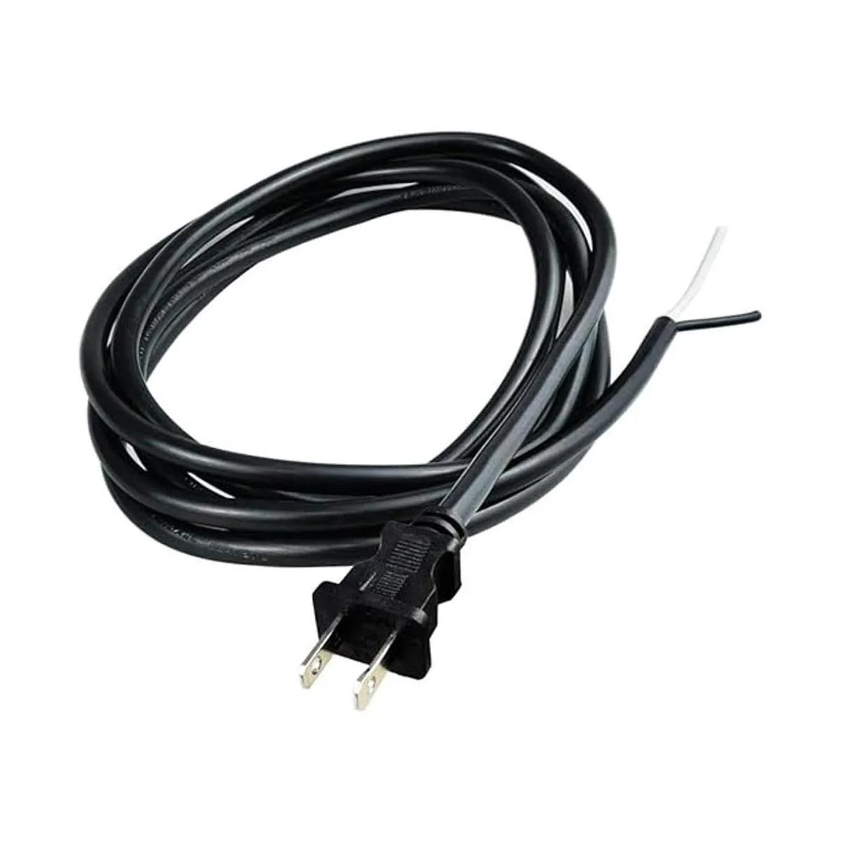 Cable de alimentación de repuesto negro de 10 pies, 2 hilos, 14/2 NEMA 115P macho a extremo desnudo un extremo, que tiene cableado abierto en el otro extremo.