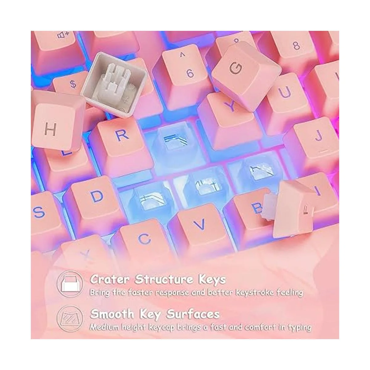 Ergonomic Design The Kawaii Gaming keyboard and mouse is ergonomically designed. The light up Keyboard with a scientific layout of concave keycaps makes your fingers fit more comfortably. Antislip pads to enhance the stability of the keyboard and prevent it from moving. And 1cm rear feet increases the angle of the keyboard, making the wrist more relaxed and effectively reducing hand fatigue after prolonged use.