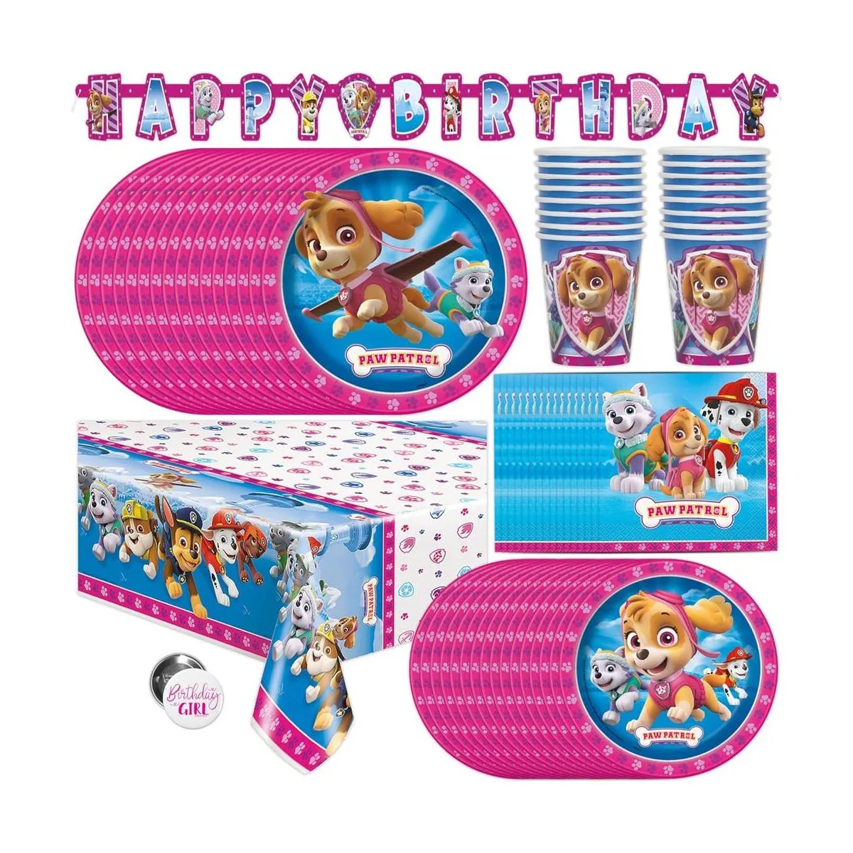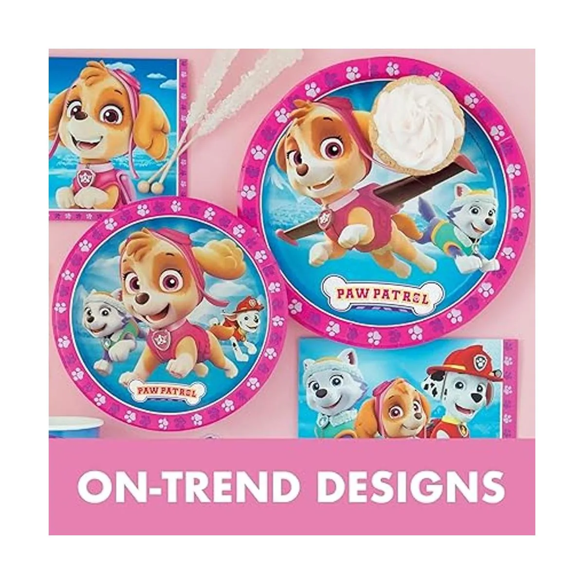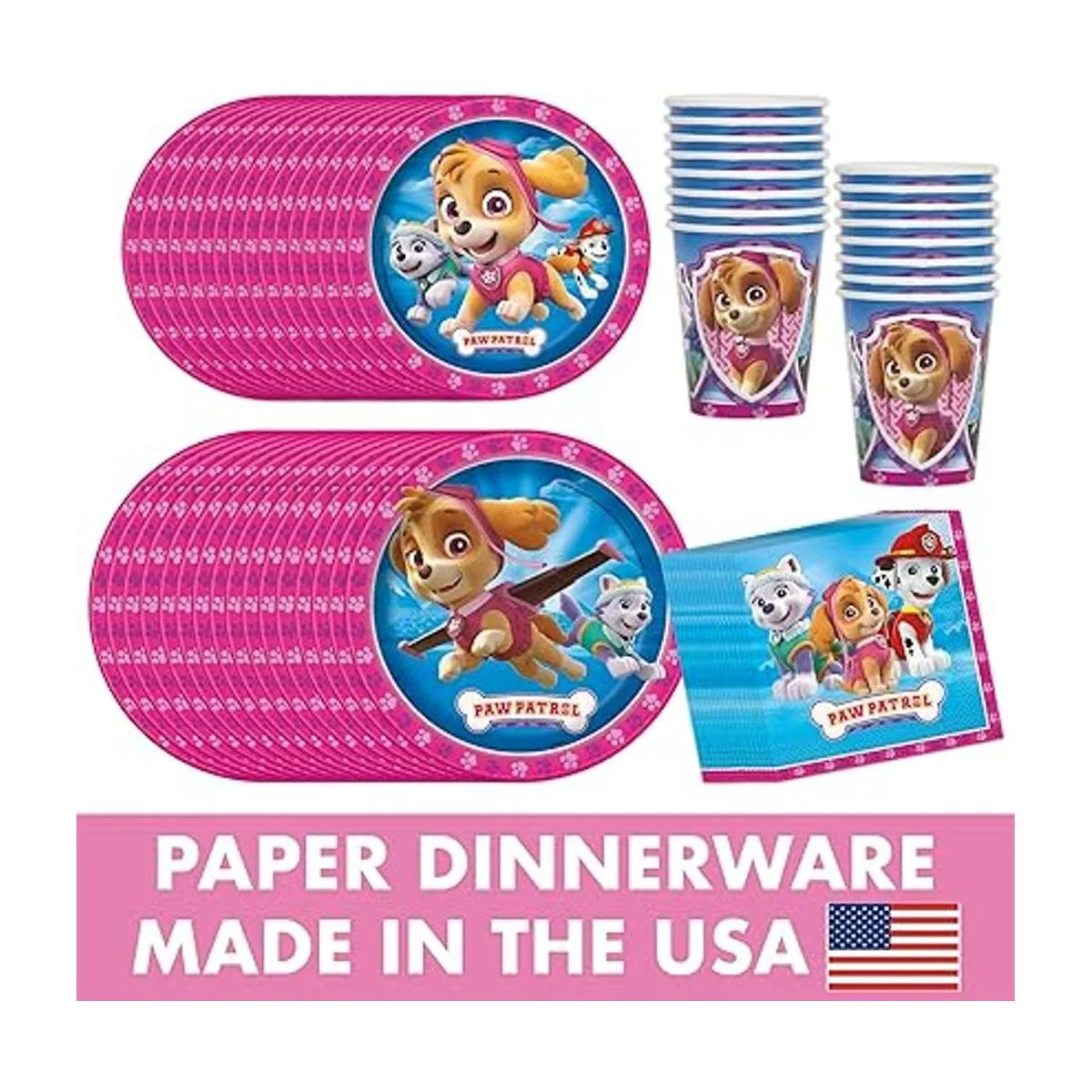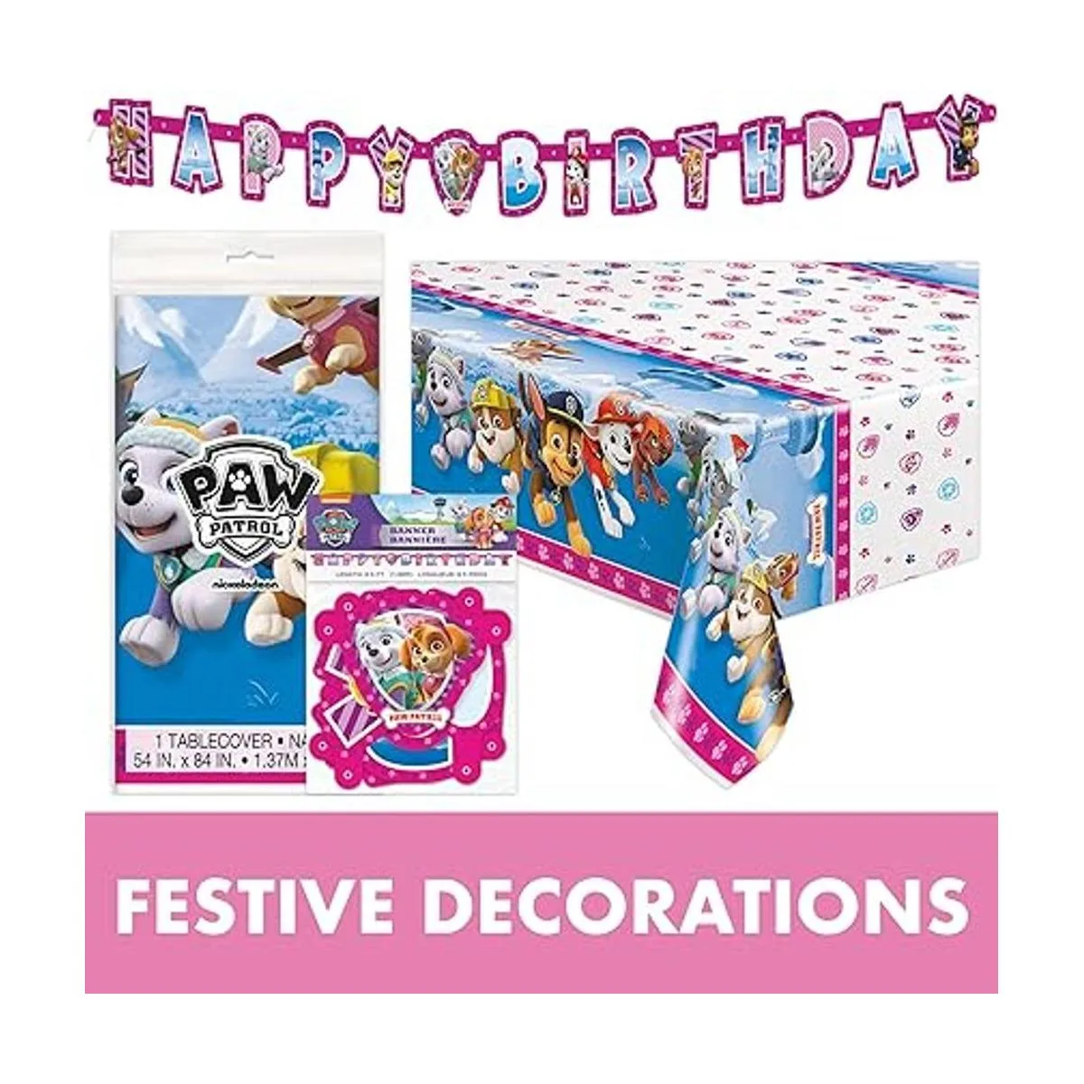Pink Skye Paw Patrol Suministros y decoraciones para fiesta de cumpleaños de niñas, cuenta con Skye y Everest, sirve a 16 invitados, incluye vajilla y decoración con cubierta de mesa, pancarta, platos, servilletas y más