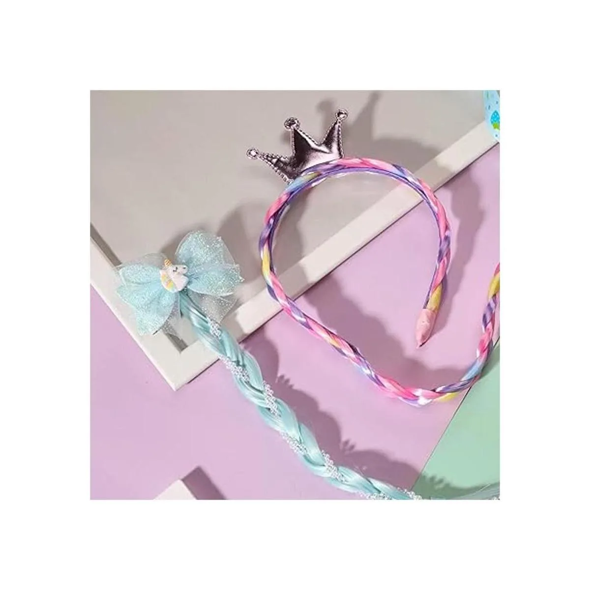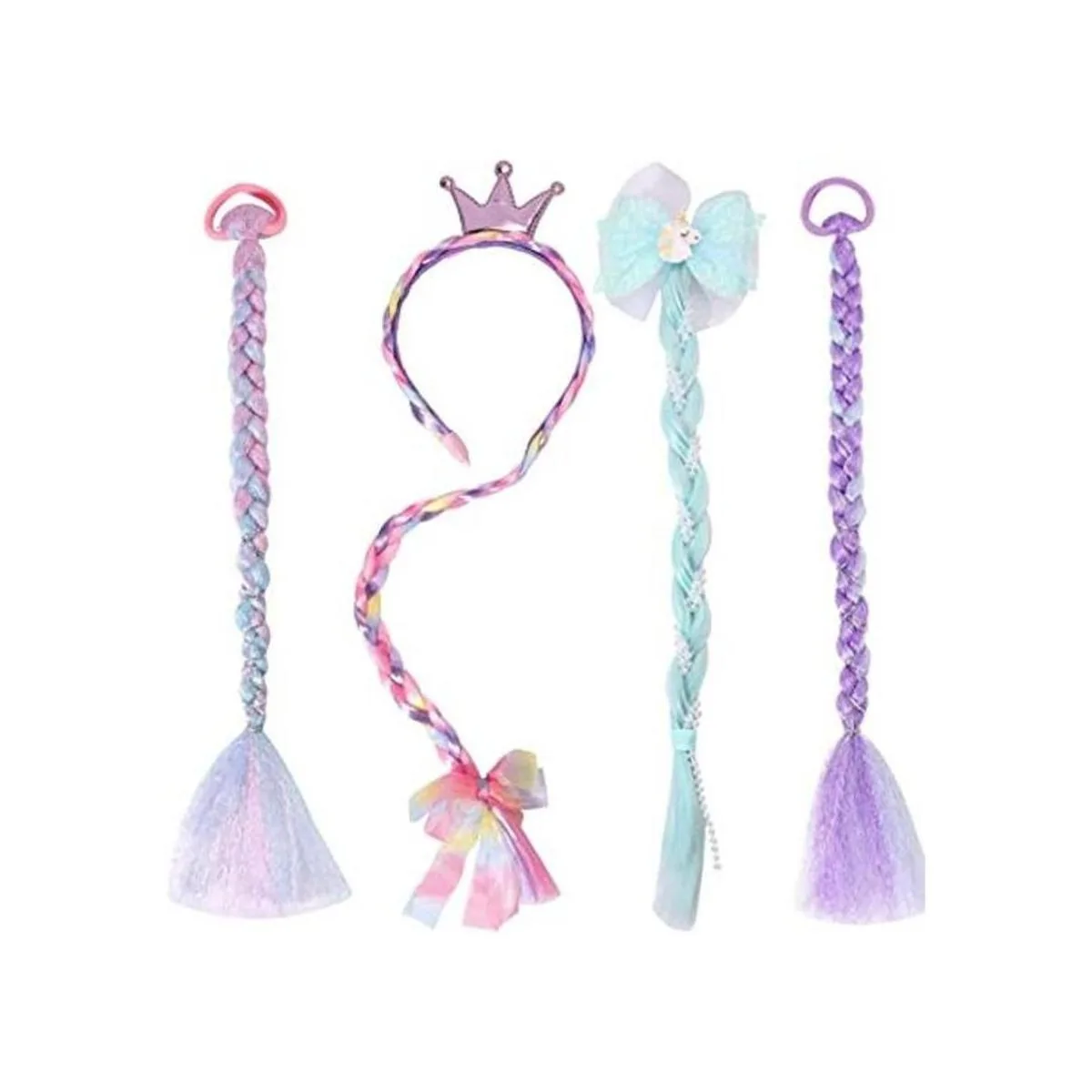 PinkSheep 4 piezas de unicornio sirena con purpurina, lazos de pelo trenzados, peluca de pelo falso, peluca de pelo arcoíris, extensiones de cabello para niños, pelucas para niñas pequeñas, accesorios para el cabello de disfraces