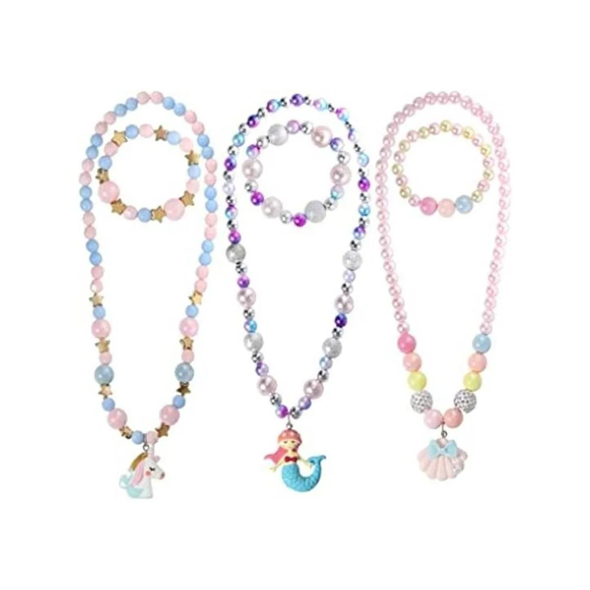 PinkSheep Joyas para niños y niñas, 3 juegos de collar para niños pequeños, pulsera para niñas, joyería de juego para niñas pequeñas, joyería de disfraces para niños y niñas, accesorios, Resina, No es una piedra preciosa