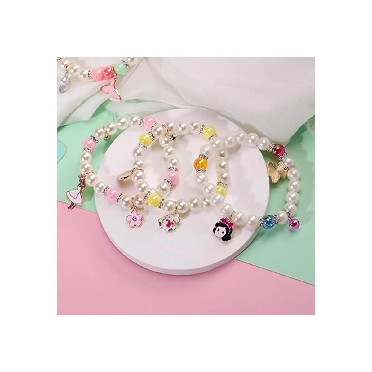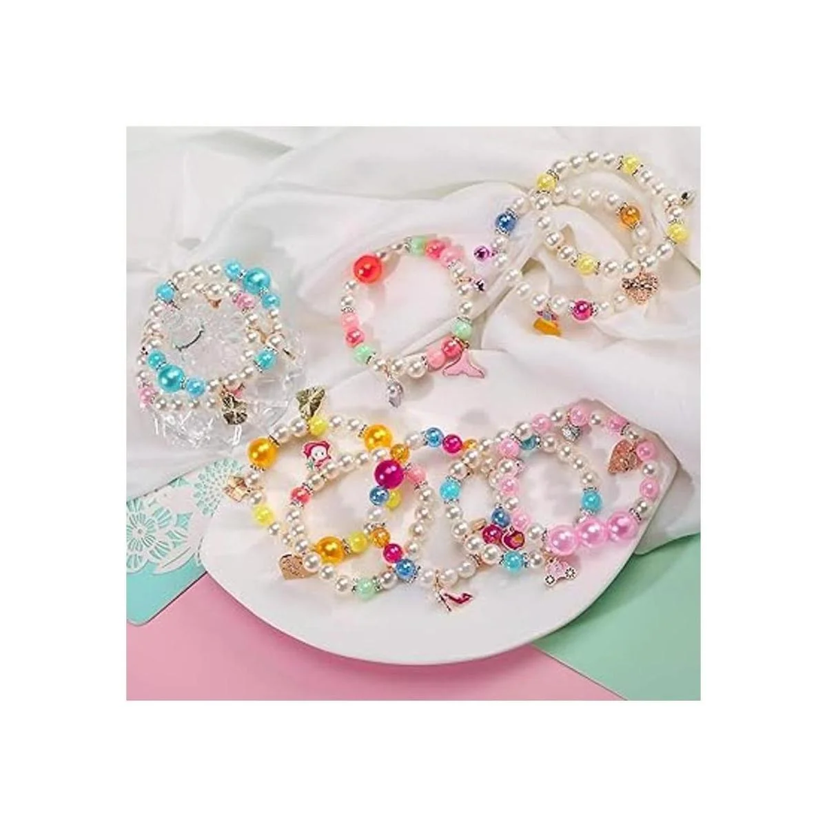 PinkSheep Pulseras de princesa de 10 piezas para niños y niñas, pulseras de cuentas de perlas para adolescentes, juego de joyas para adolescentes, disfraz de princesa, juego de simulación, Plástico Resina