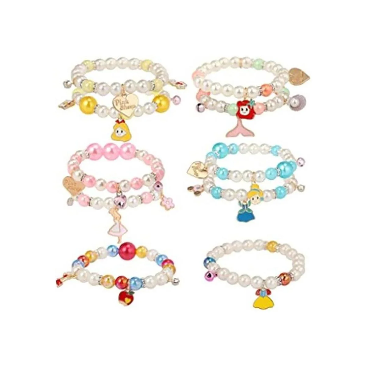 PinkSheep Pulseras de princesa de 10 piezas para niños y