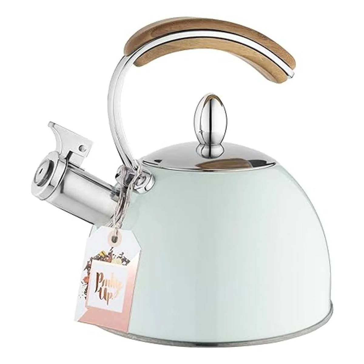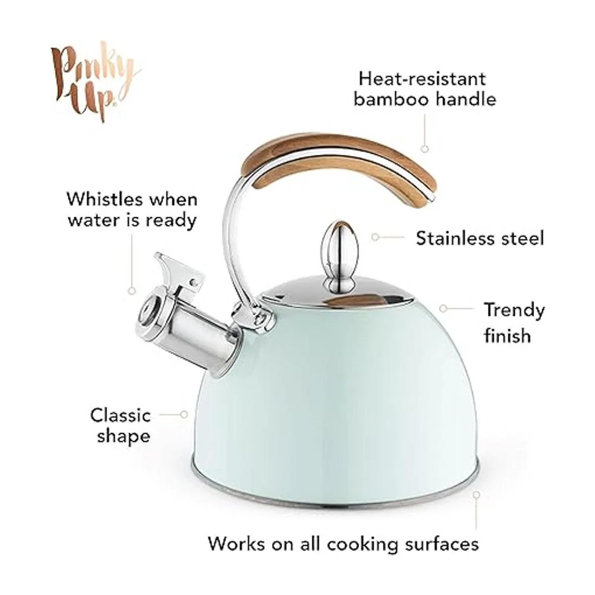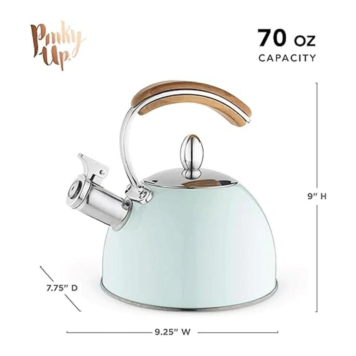 Pinky Up Presley Hervidor de té de 70 onzas de capacidad, hervidor de acero inoxidable con silbido apto para estufa de inducción, color pistacho