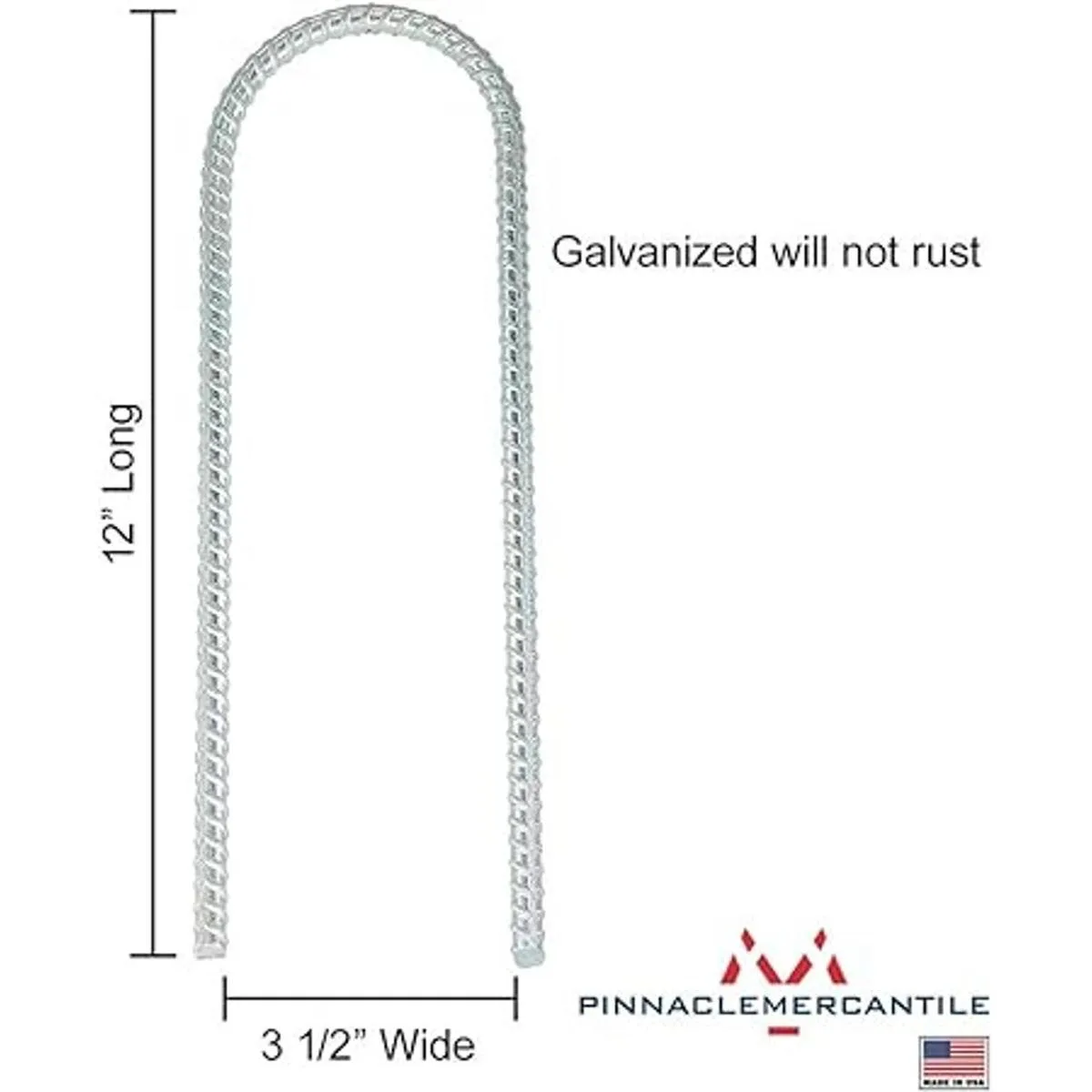 Anclajes galvanizados más fuertes: estas estacas de cama elástica de 12 pulgadas de largo con bordes ayudan a evitar que las estacas se salgan durante vientos fuertes