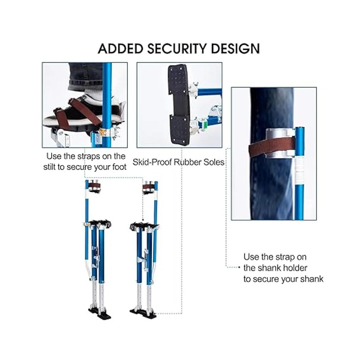 Nuestros zancos de yeso premium son adecuados para amplias aplicaciones: herramienta ideal para pintura de yeso, electricidad, techos caídos, rendimiento de escenario y muchas otras aplicaciones. Ajustable de 24 a 40 pulgadas para adaptarse a diferentes alturas de trabajo, capacidad de carga de 225 libras