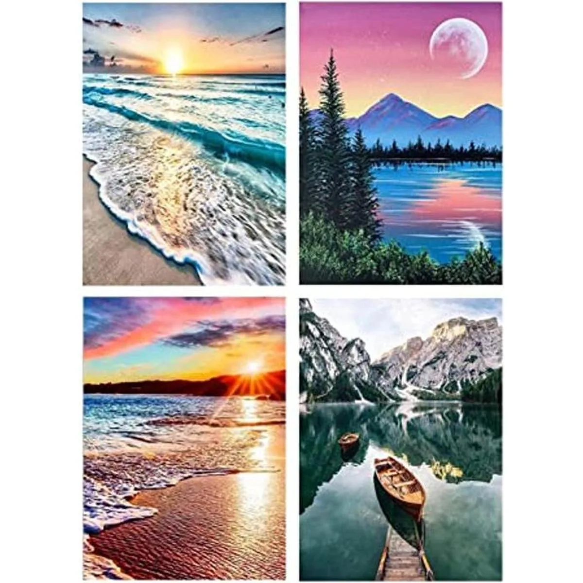 Lo que obtendrás: 4 lienzos texturizados preimpresos sin marco, 4 juegos de pinturas acrílicas, 4 juegos de pinceles de pintura por números incluye 3 piezas. Accesorios de pintura por números, gancho guía de papel de dibujo de números. Tamaño: 12 x 16 pulgadas