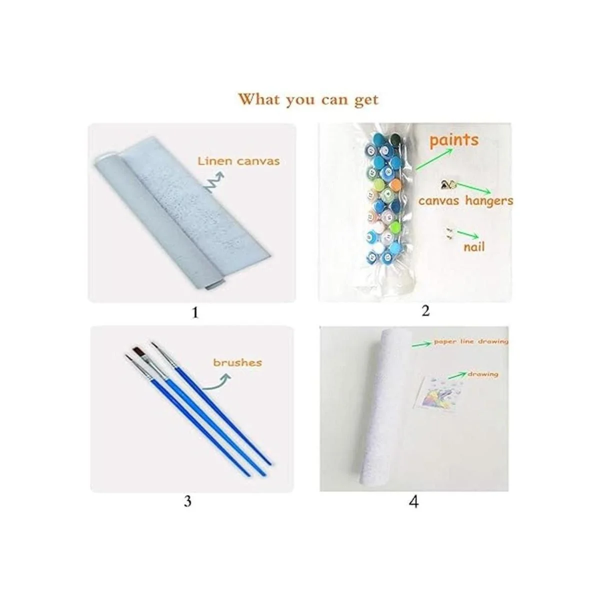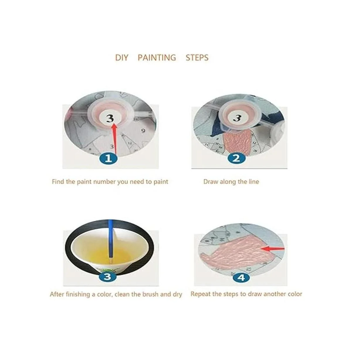 Lienzo y acrílico Lienzo de alta calidad, la superficie del lienzo es lisa y limpia, los números son fáciles de identificar, y el contorno de las líneas es claro. Pintura acrílica respetuosa con el medio ambiente, color brillante, fácil de colorear, secado rápido, fuerte cobertura.